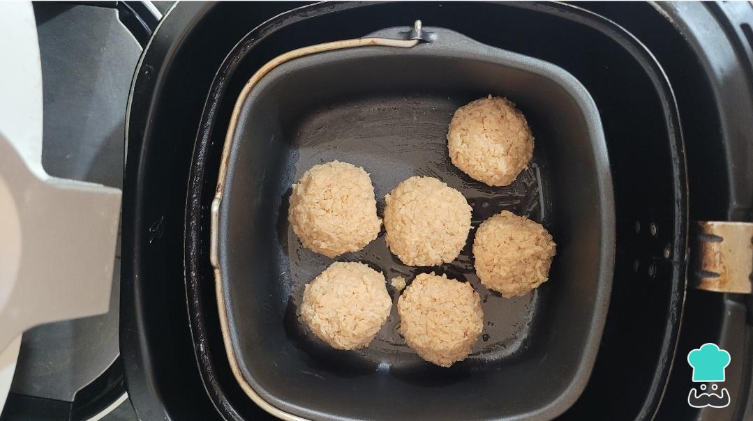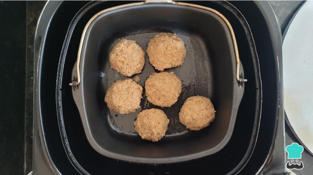 Ao completar 10 minutos, interrompa e vire as almôndegas, para que fritem por igual. Você pode fazer esse processo no forno ou no óleo quente também.