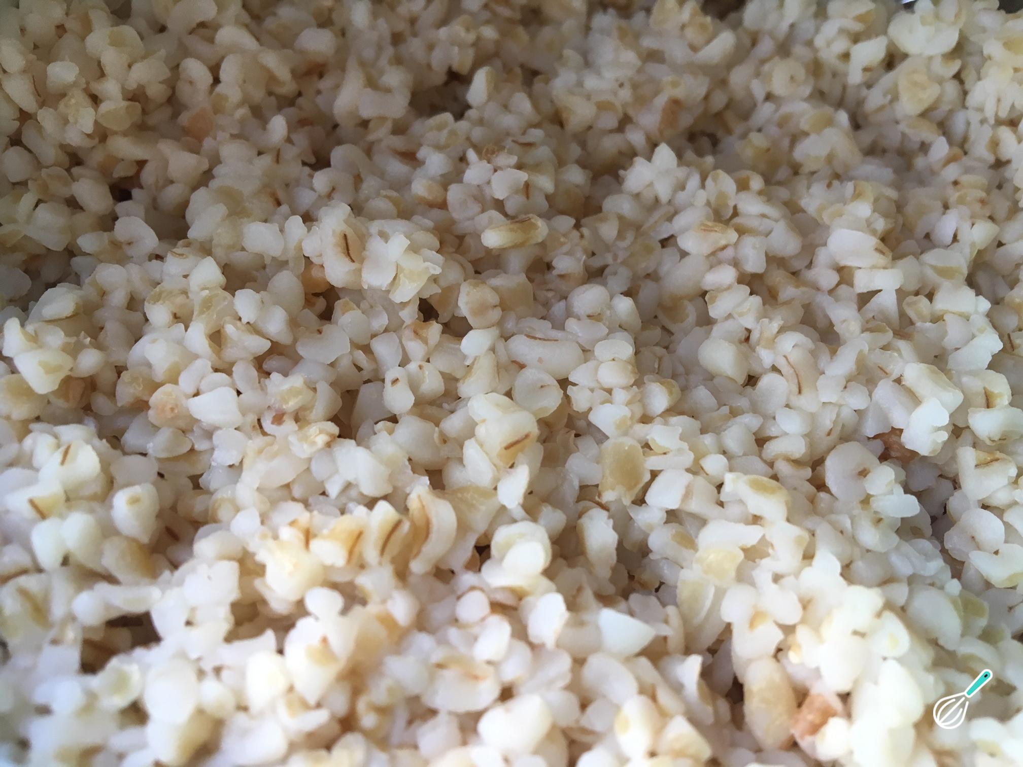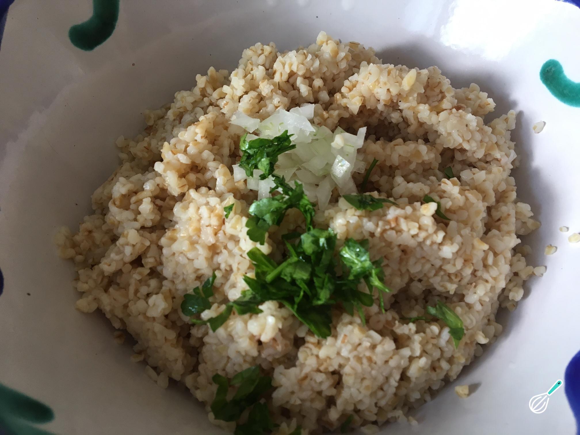 Numa tigela misture o triguilho com a cebola e a salsinha picadas.