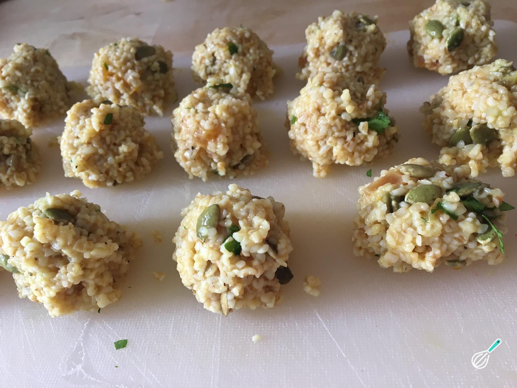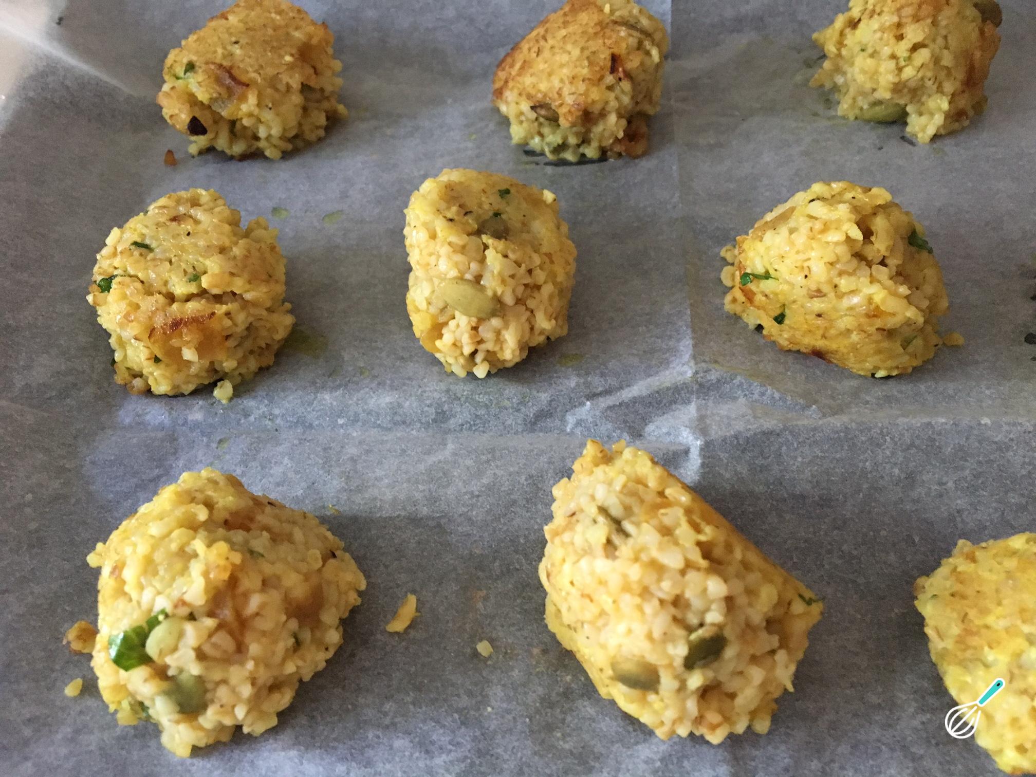 Depois de irem no forno, suas almôndegas de triguilho estão finalmente prontas! Sirva acompanhadas de molho de iogurte ou maionese caseira sem ovo. Bom apetite e diga nos comentários o que achou!