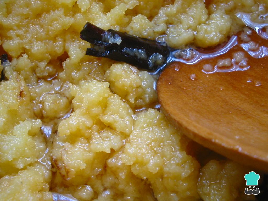 Acrescente à mistura de ambrosia gaúcha o açúcar restante, cuidadosamente para não desfazer os grumos. Quando ferver novamente, adicione a calda de açúcar, os cravos e o pau de canela e misture. Deixe cozinhar em fogo baixo por cerca de 1h30, sem mexer.