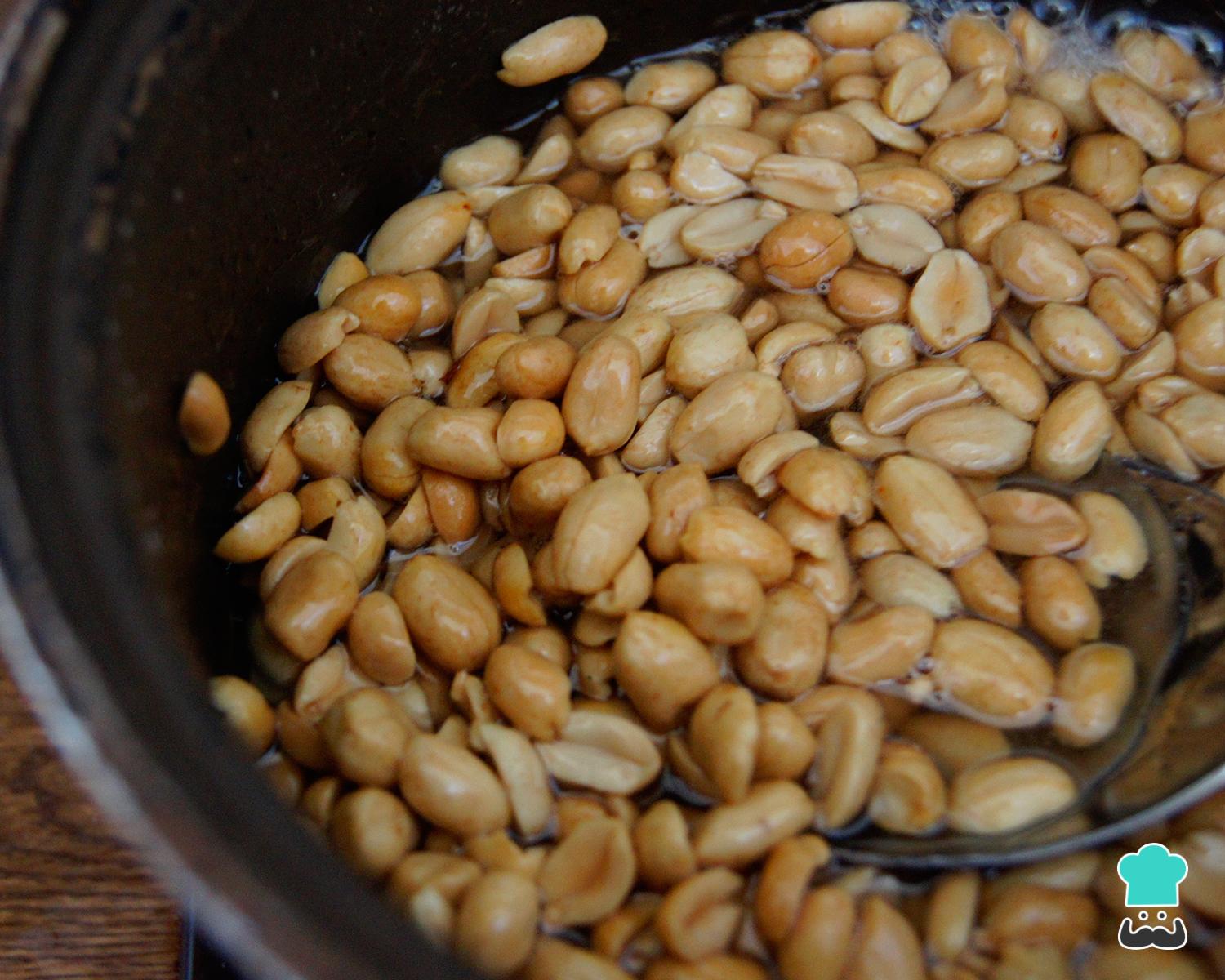 Cerca de 10-15 minutos depois de ferver, a mistura do amendoim doce vai começar a engrossar. Não pare de mexer para que o açúcar cristalize e a mistura fique sequinha.