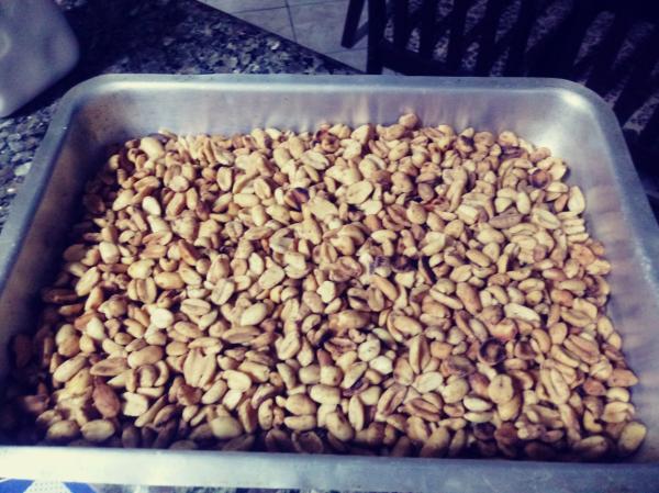 Dica: Enquanto o amendoim esfria, pode polvilhar sal fino neles.