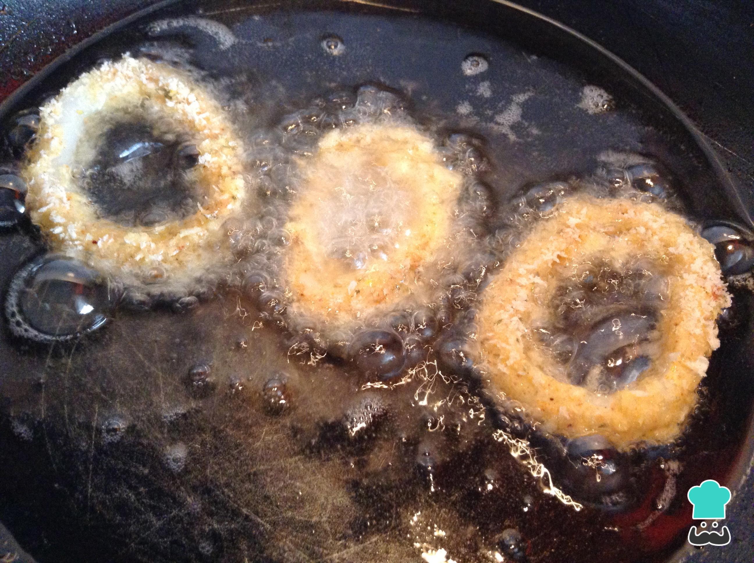 Em uma panela funda adicione óleo de girassol abundante. Assim que estiver quente, adicione alguns anéis de lulas e deixe fritar dos dois lados por dois ou três minutos, aproximadamente.