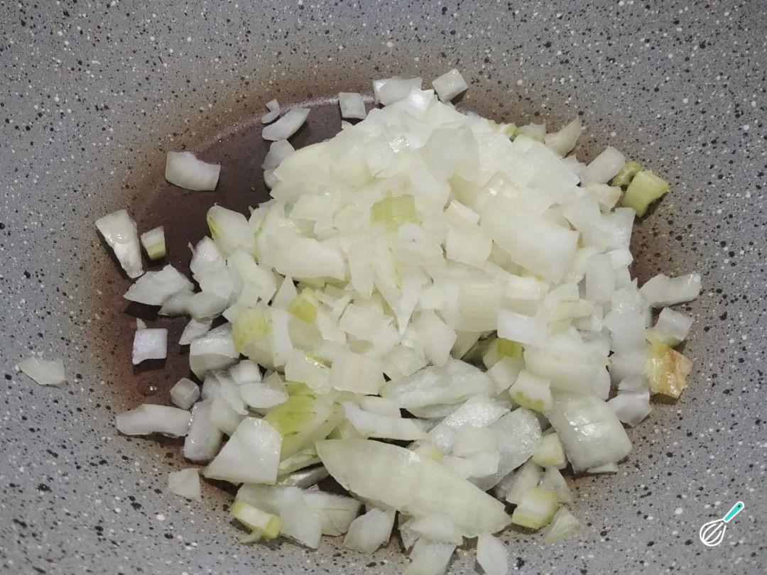 Numa frigideira à parte esquente um pouco de azeite e refogue as cebolas por 7-8 minutos. Depois junte à panela onde está cozinhando esta caponata de berinjela fácil.