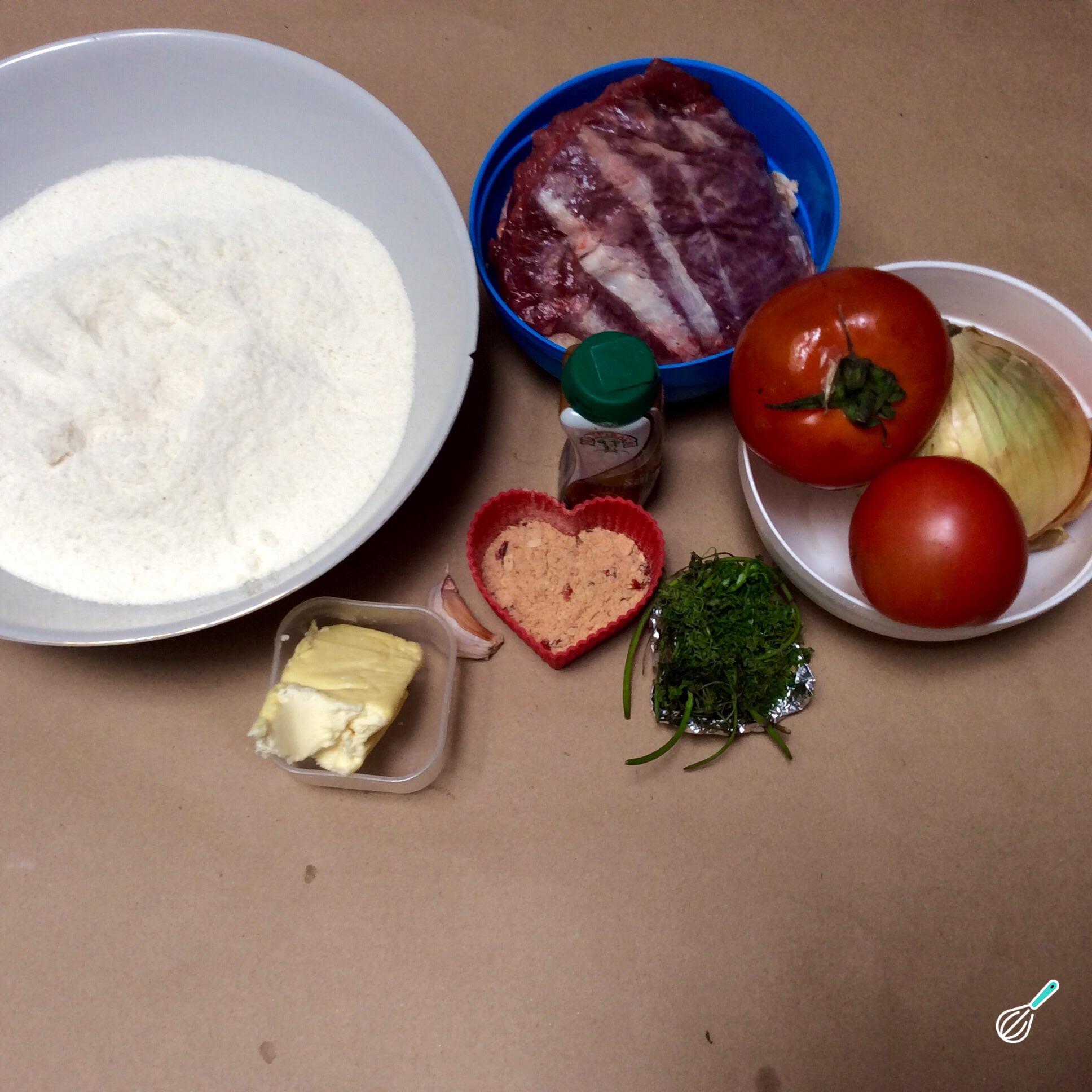 A primeira coisa que você deve fazer é juntar todos os ingredientes desta receita de arepas de carne.