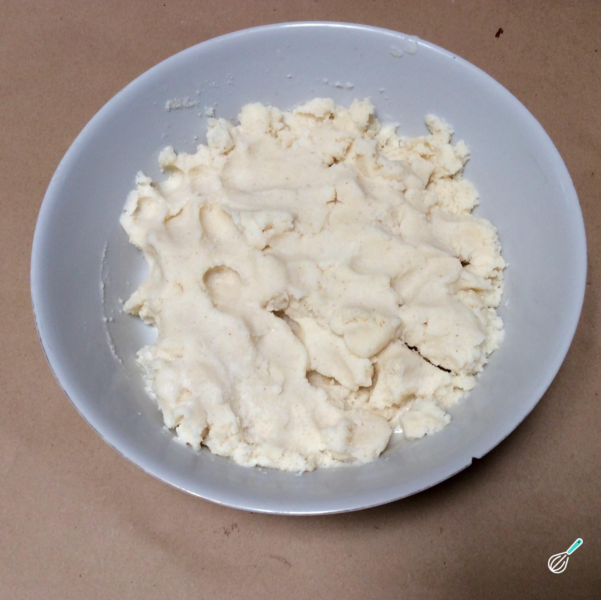 Misture os ingredientes até obter uma massa homogênea, lisa e consistente.