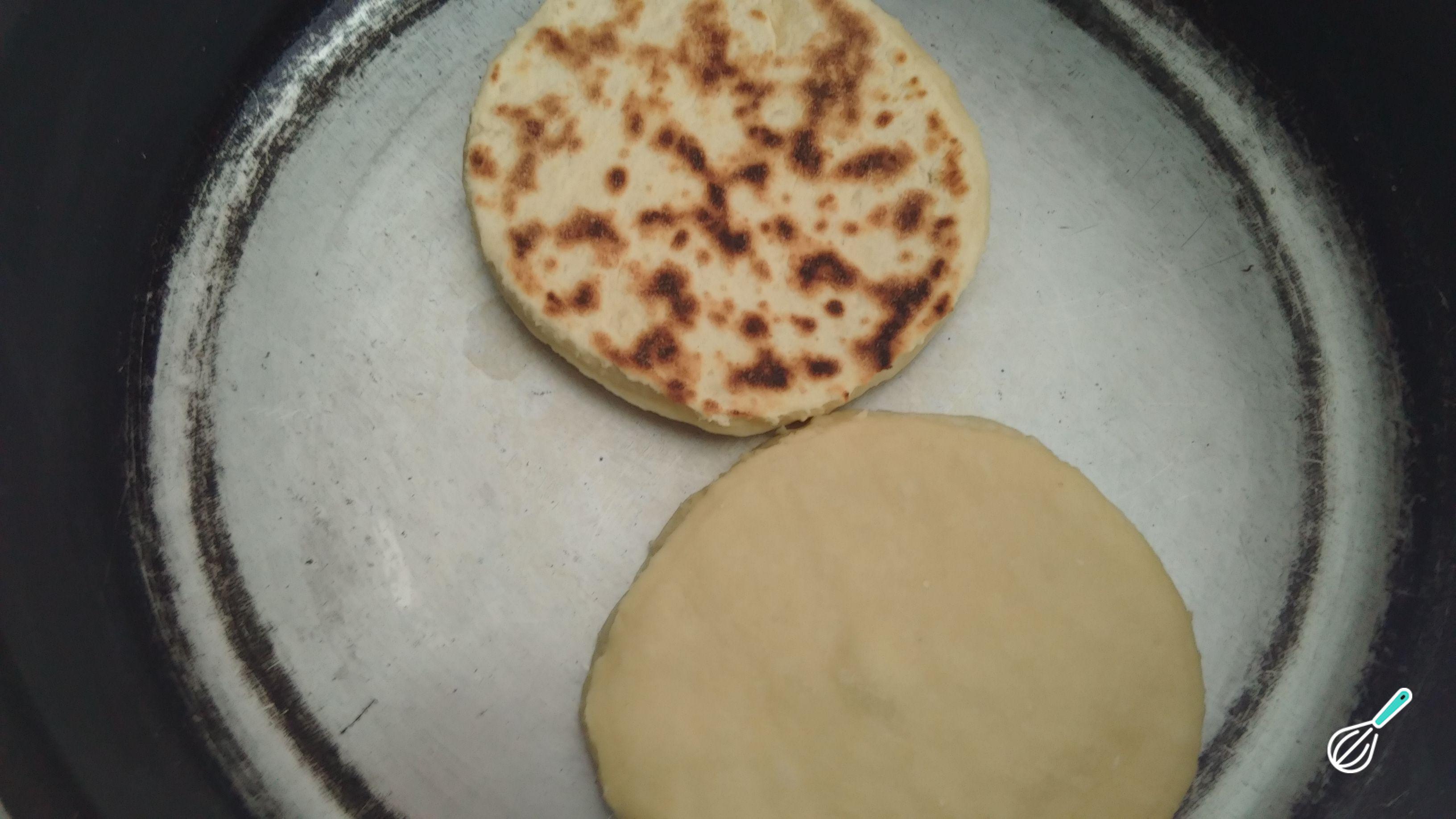 Você saberá que as arepas estão prontas para virar quando inflarem. Vire ao contrário e deixe dourar do outro lado também.