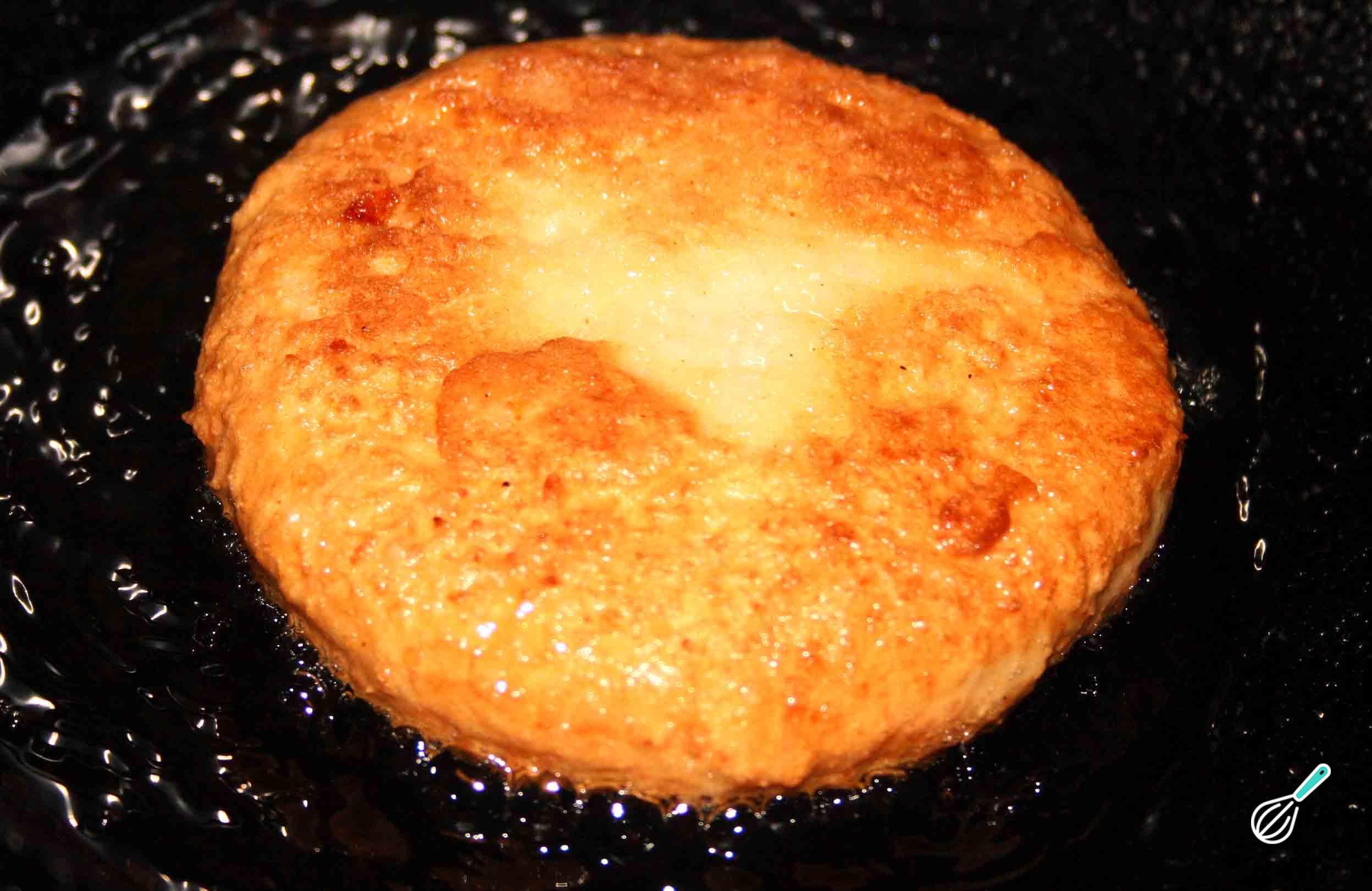 Frite a sua arepa, espere cinco minutos e vire, para fritar do outro lado. O fogo não deve de estar muito alto.