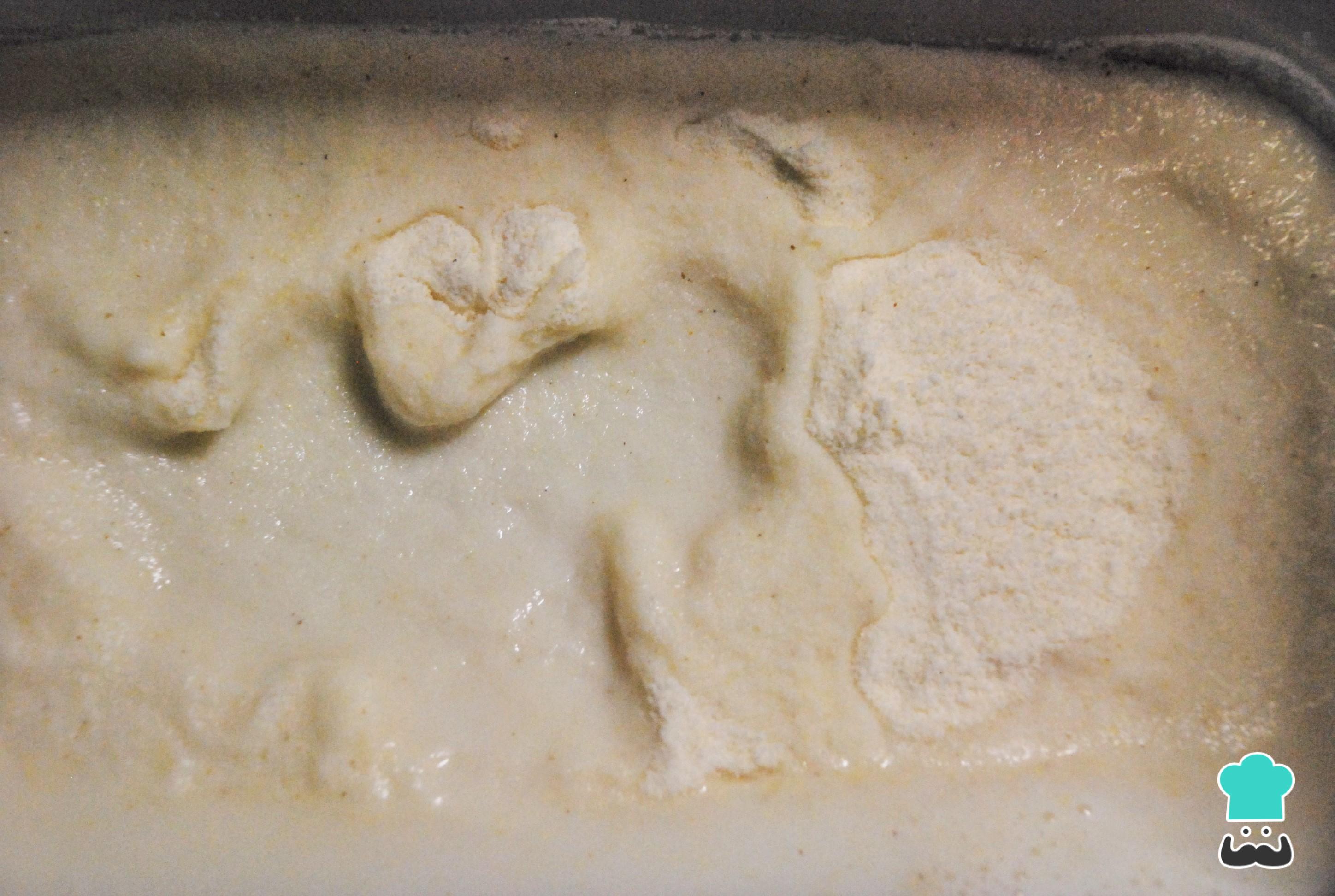 Para preparar esta receita de arepas de farinha de milho comece por fazer a massa: misture o leite com a água e acrescente aí a farinha, o sal e o queijo.
