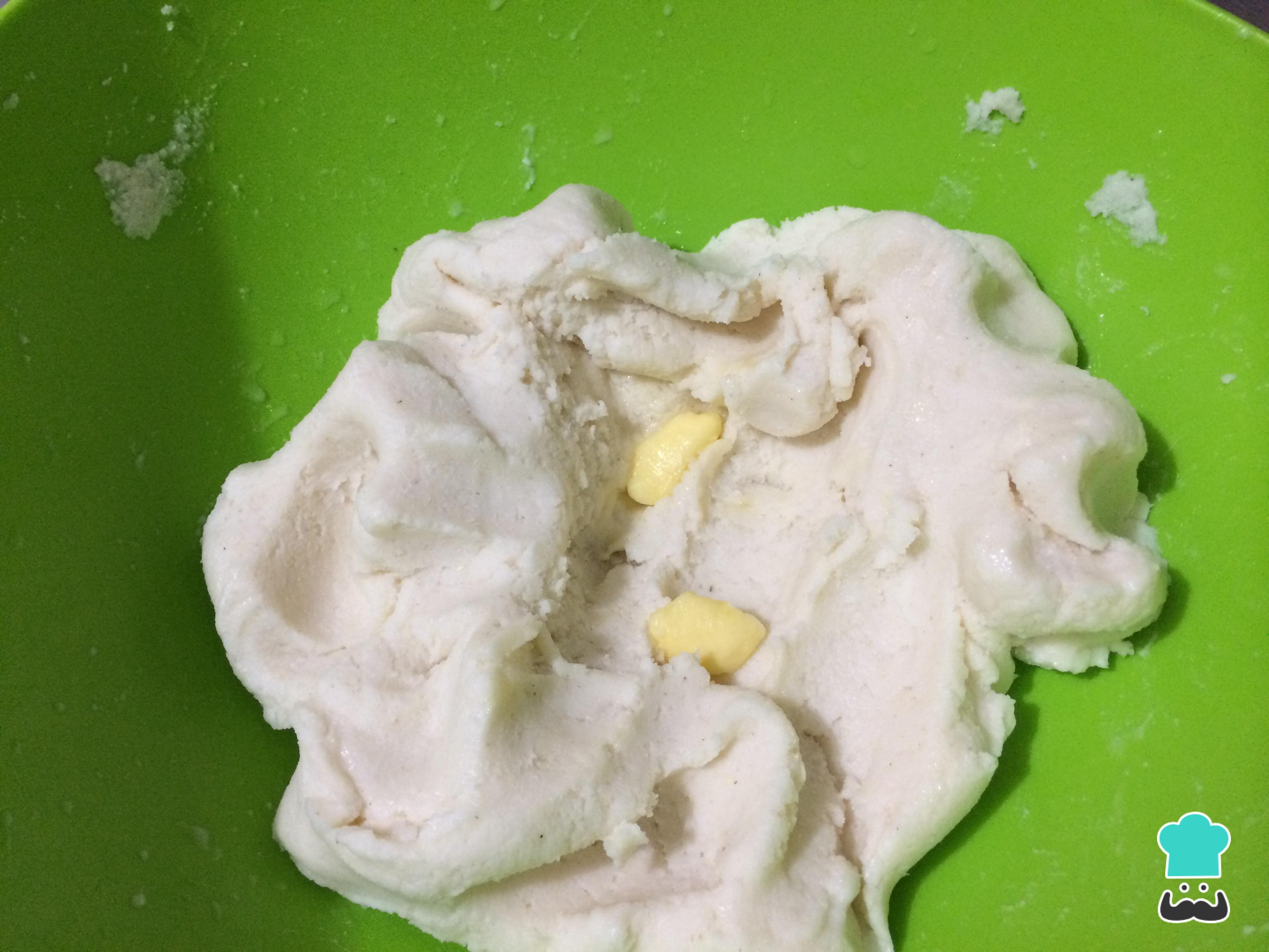 É importante obter uma massa de arepa compacta e lisa, pelo que terá de sovar bem com as mãos. Quando ficar como na fotografia, acrescente a manteiga e volte a sovar, para incorporar.