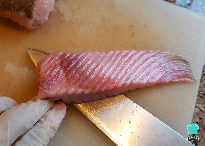 É bem simples fazer arraia frita! Na peixaria você pode pedir arraia já sem pele e cortada fininha para fritar. Se sua arraia não estiver pronta, use uma faca afiada para separar a pele e cortar o peixe em 4 ou 6 partes.