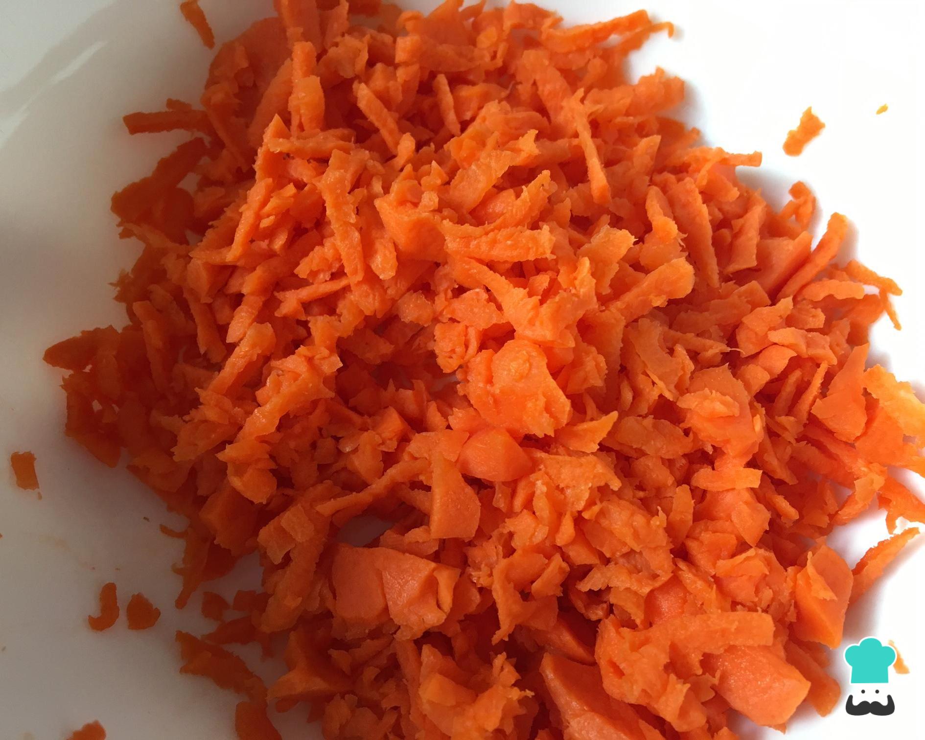 Enquanto isso descasque a cenoura e rale. Se preferir pode também picar em pedacinhos pequenos.