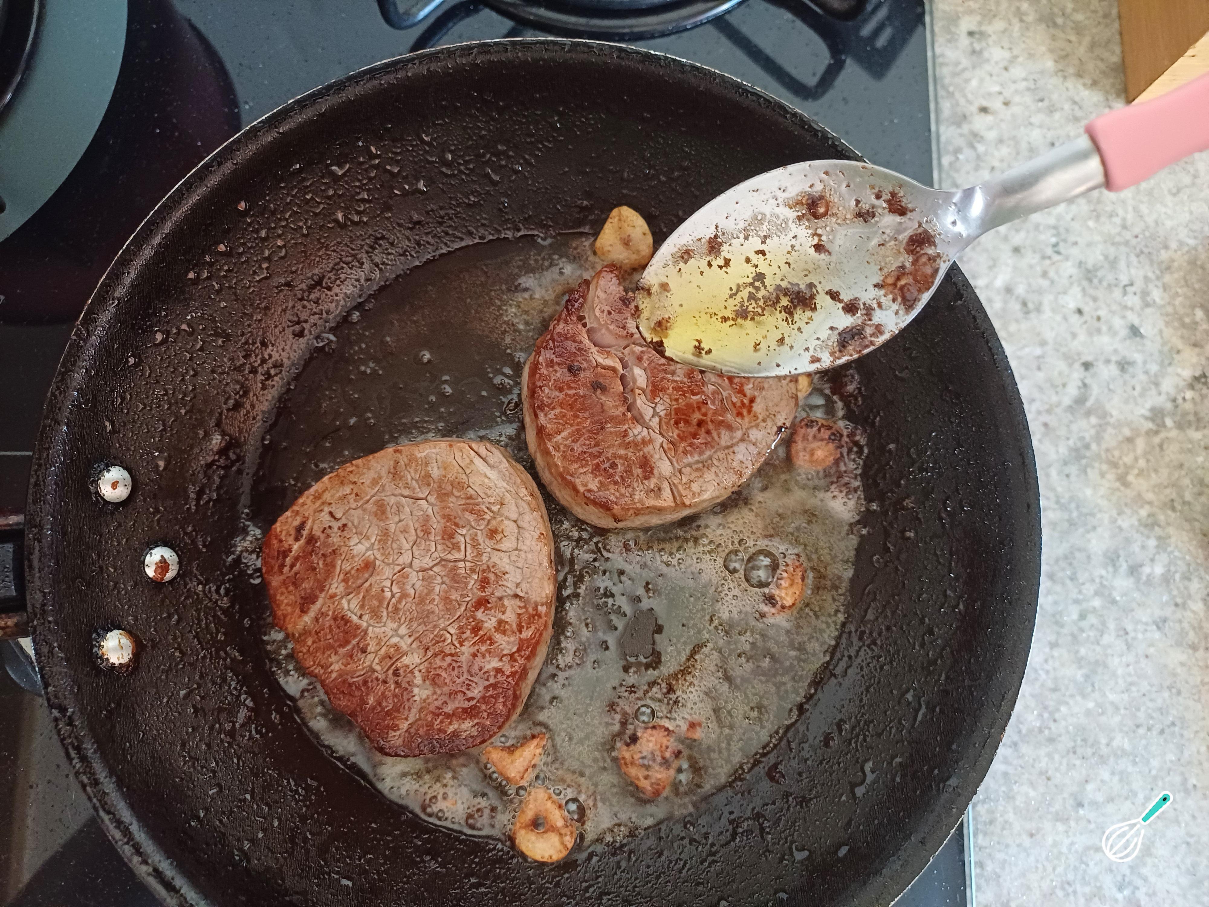 Grelhe os medalhões em fogo médio, dourando cada lado por cerca de 3 a 4 minutos, regando sempre com a gordura que vai soltando da carne.