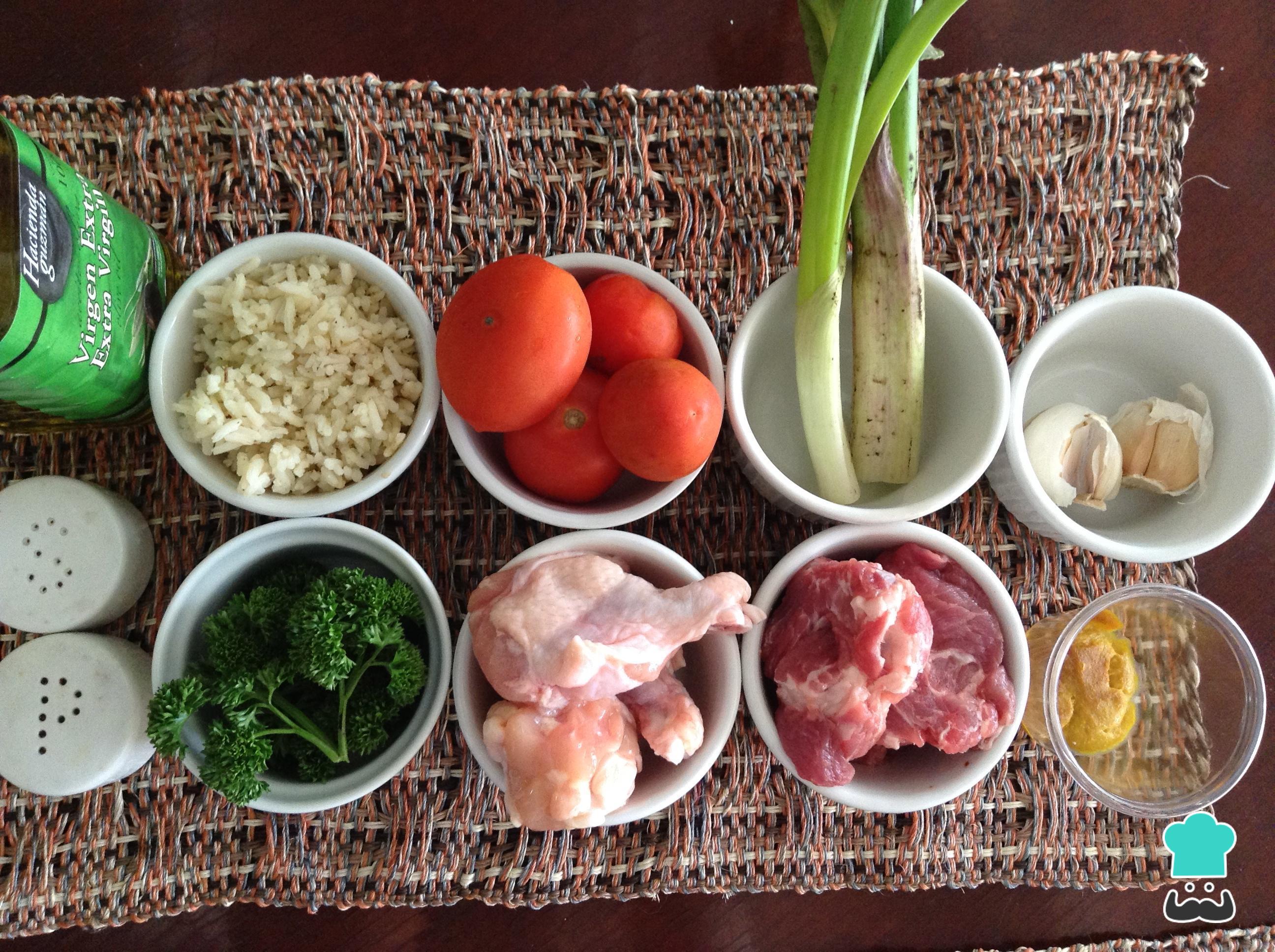 Para começar fazendo esta receita de arroz atolado, o primeiro passo é reunir todos os ingredientes.