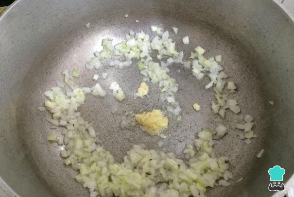 Em uma panela coloque a manteiga, o alho picado e deixe fritar por 1 minuto.