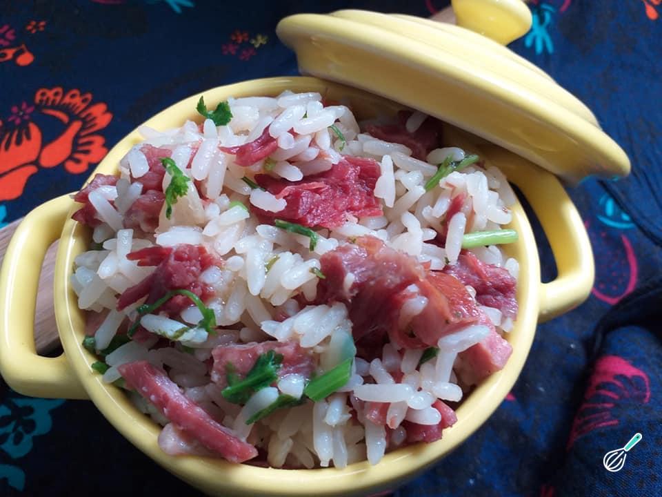 Que tal aprender a preparar esse arroz carreteiro com carne seca para festa junina? Confira abaixo todos os detalhes e passo a passo em fotos!