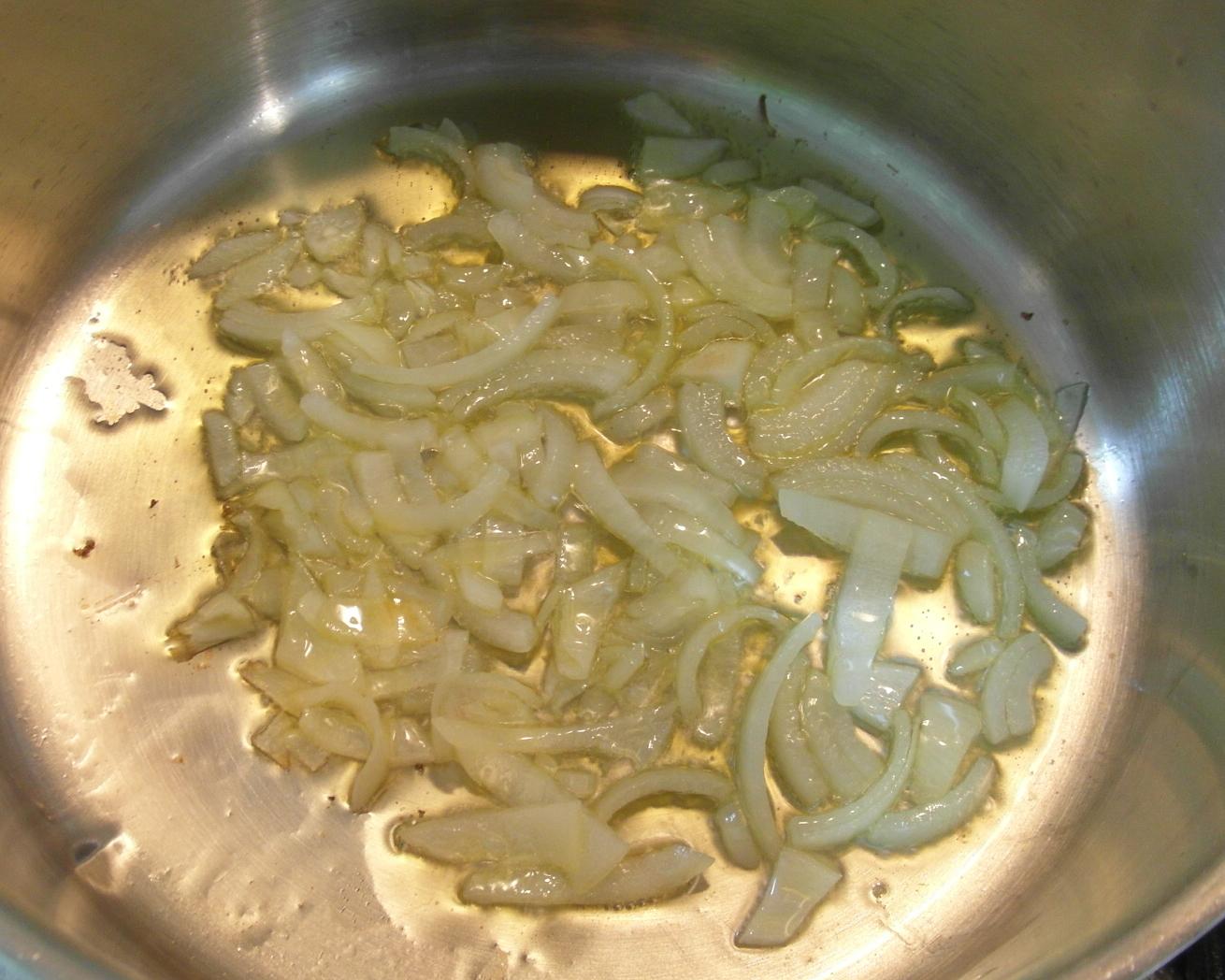 Leve ao fogo uma panela com o óleo, a cebola e o alho picados e deixe refogar por 1-2 minutos. Coloque o arroz e refogue junto por mais uns minutinhos ou até o grão começar a ficar transparente.
