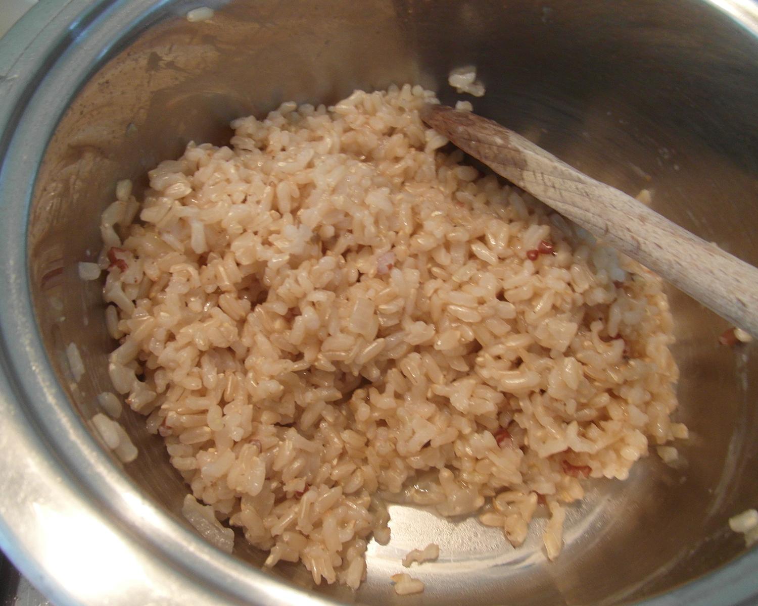 Dica: O arroz integral demora mais tempo para cozinhar que o arroz branco. Para reduzir esse tempo coloque o arroz de molho em água por algumas horas antes de preparar esta receita.