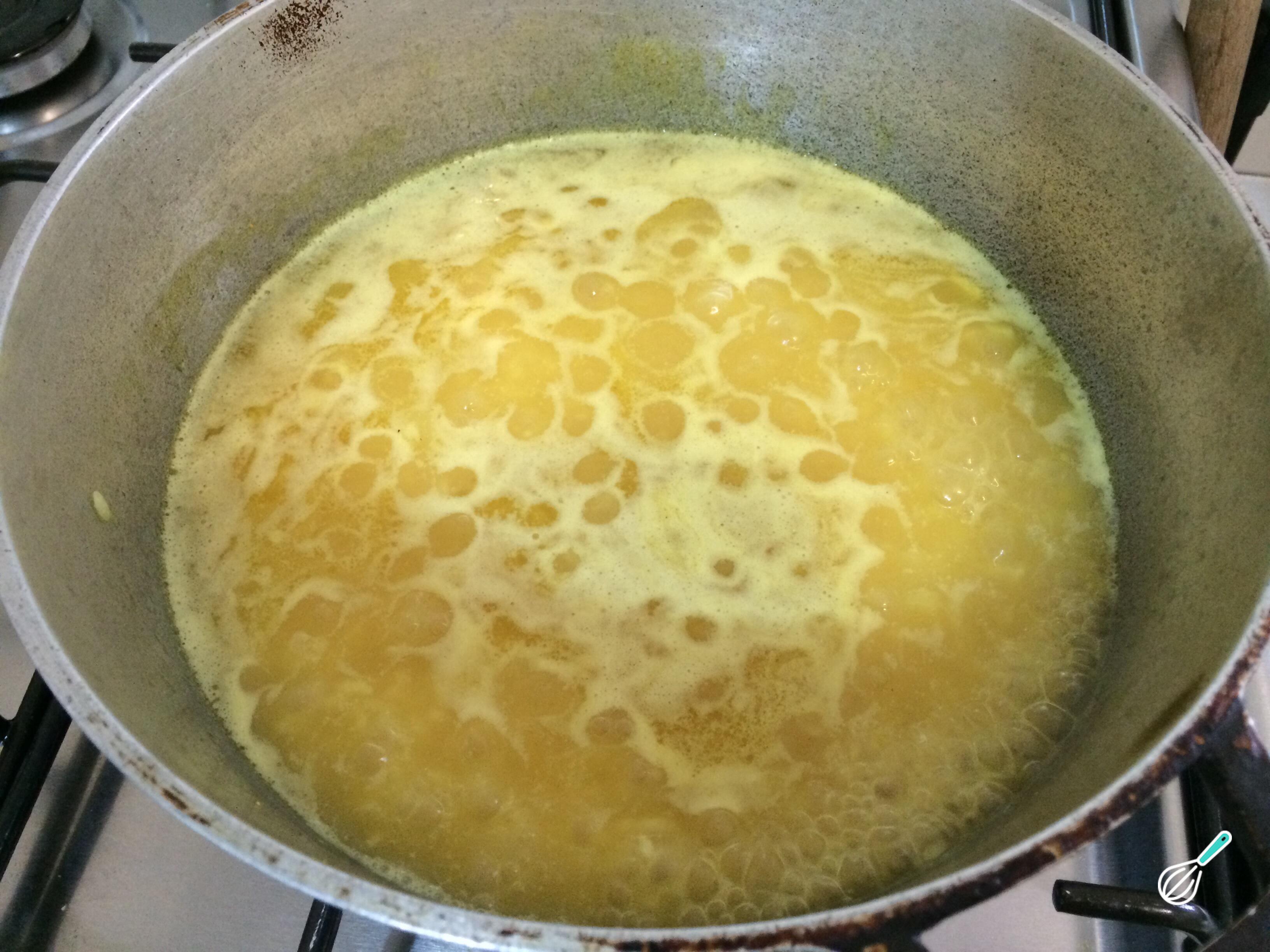 O passo seguinte do arroz de açafrão é adicionar o açafrão e refogar por mais alguns minutos, de forma a ativar o sabor desta especiaria.