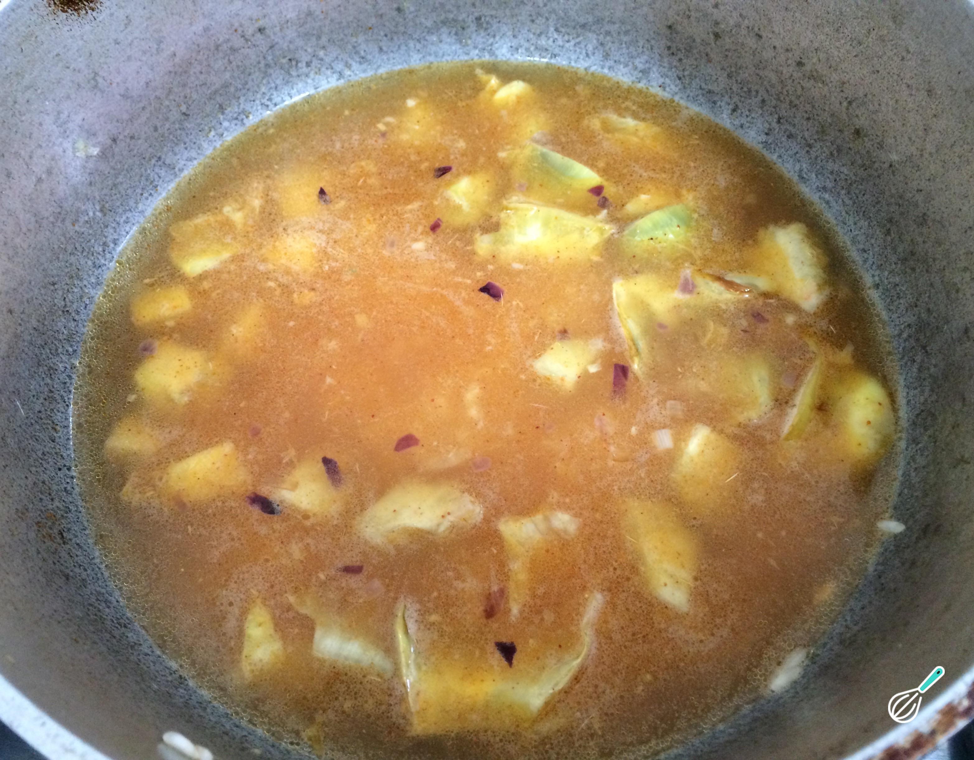 Em uma panela com azeite, refogue a cebola e os alhos picados, junto com a alcachofra, por 5 minutos em fogo baixo. Tempere a gosto com sal e pimenta.