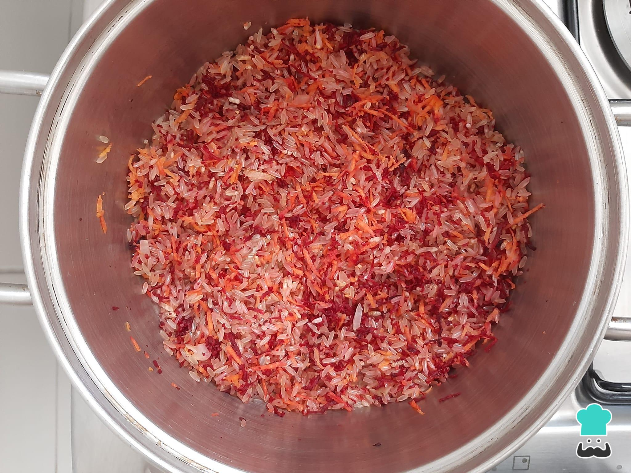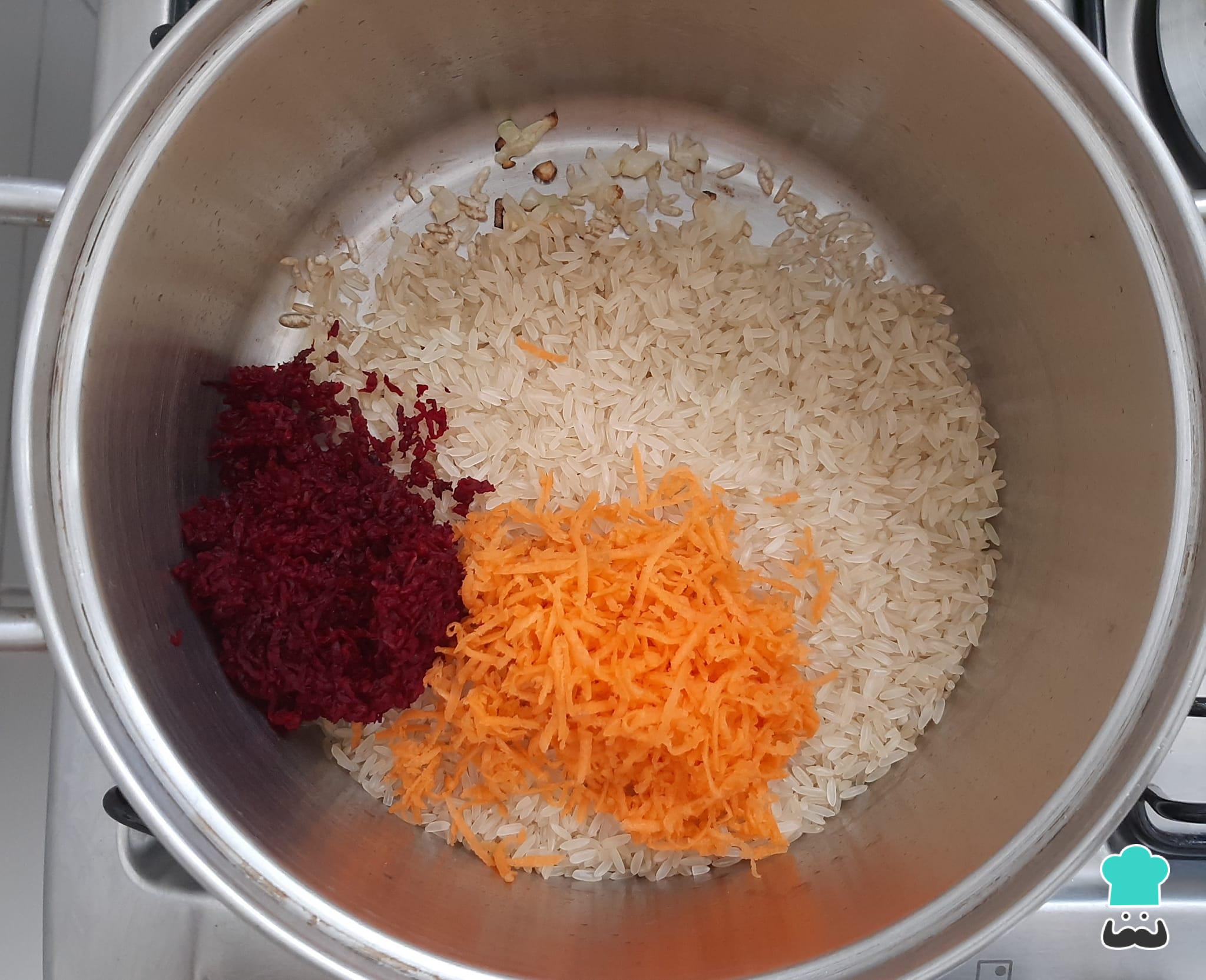 Dica: Se quiser, acrescente mais beterraba e mais cenoura ao seu arroz.