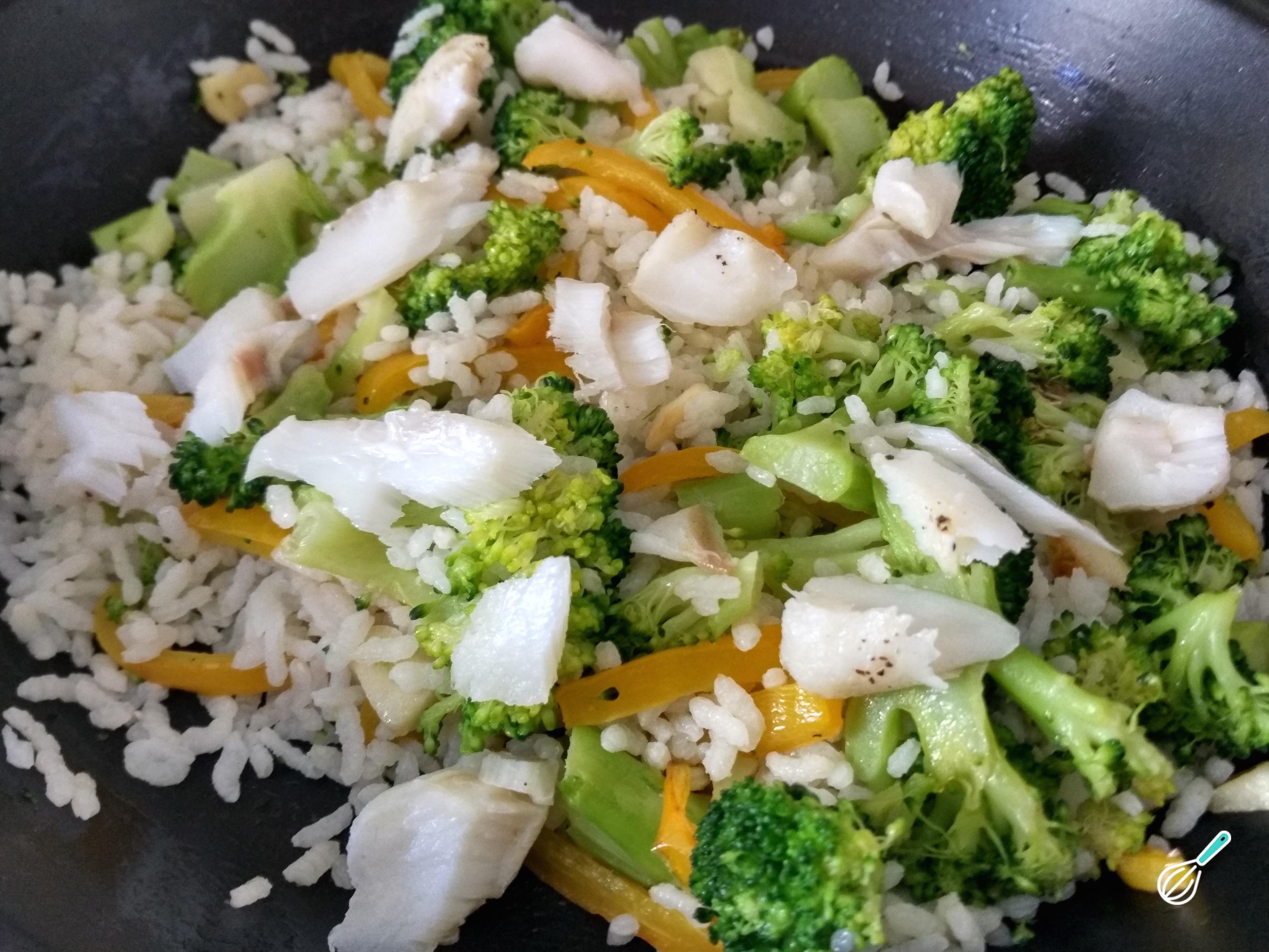 O arroz com bacalhau, como qualquer tipo de arroz com peixe, tem muitas proteínas e carboidratos, sendo um prato super nutritivo, perfeito para esportistas e crianças. O TudoReceitas combinou o arroz brócolis e bacalhau, adicionando um refogado leve com alho e pimentão amarelo.