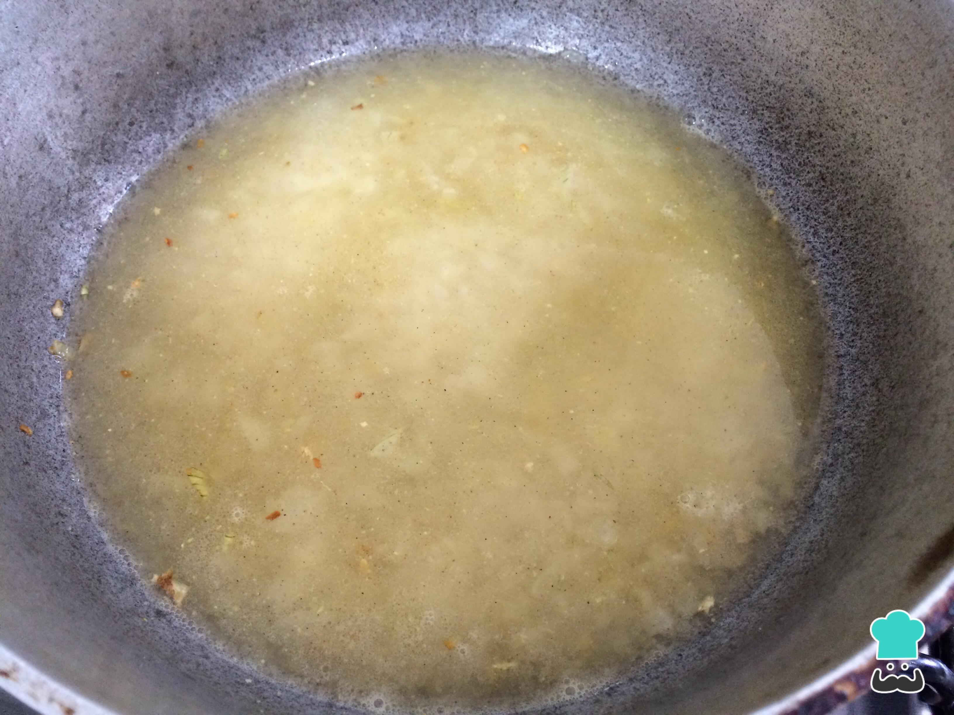 Após o passo anterior, adicione a raspa de laranja, misture e cozinhe por mais 1 minuto. Esse é o refogado que tornará seu arroz mais saboroso.