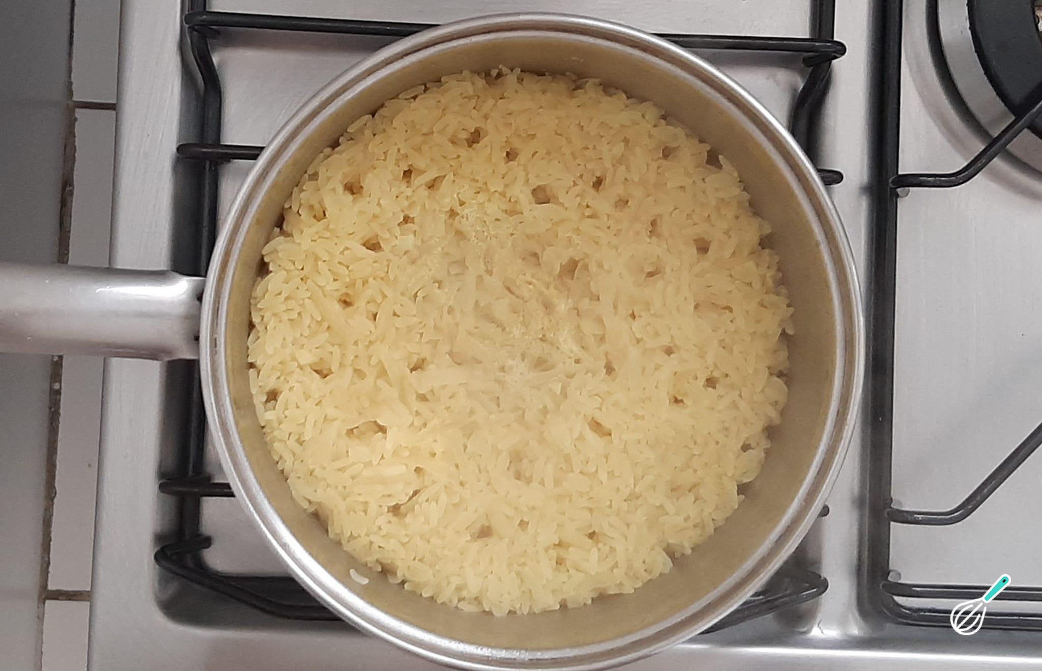 Dica: Aqui, utilizamos o arroz parboilizado. Se optar por outro tipo de arroz, confira as instruções de preparo, bem como a quantidade de água necessária para o cozimento na embalagem.