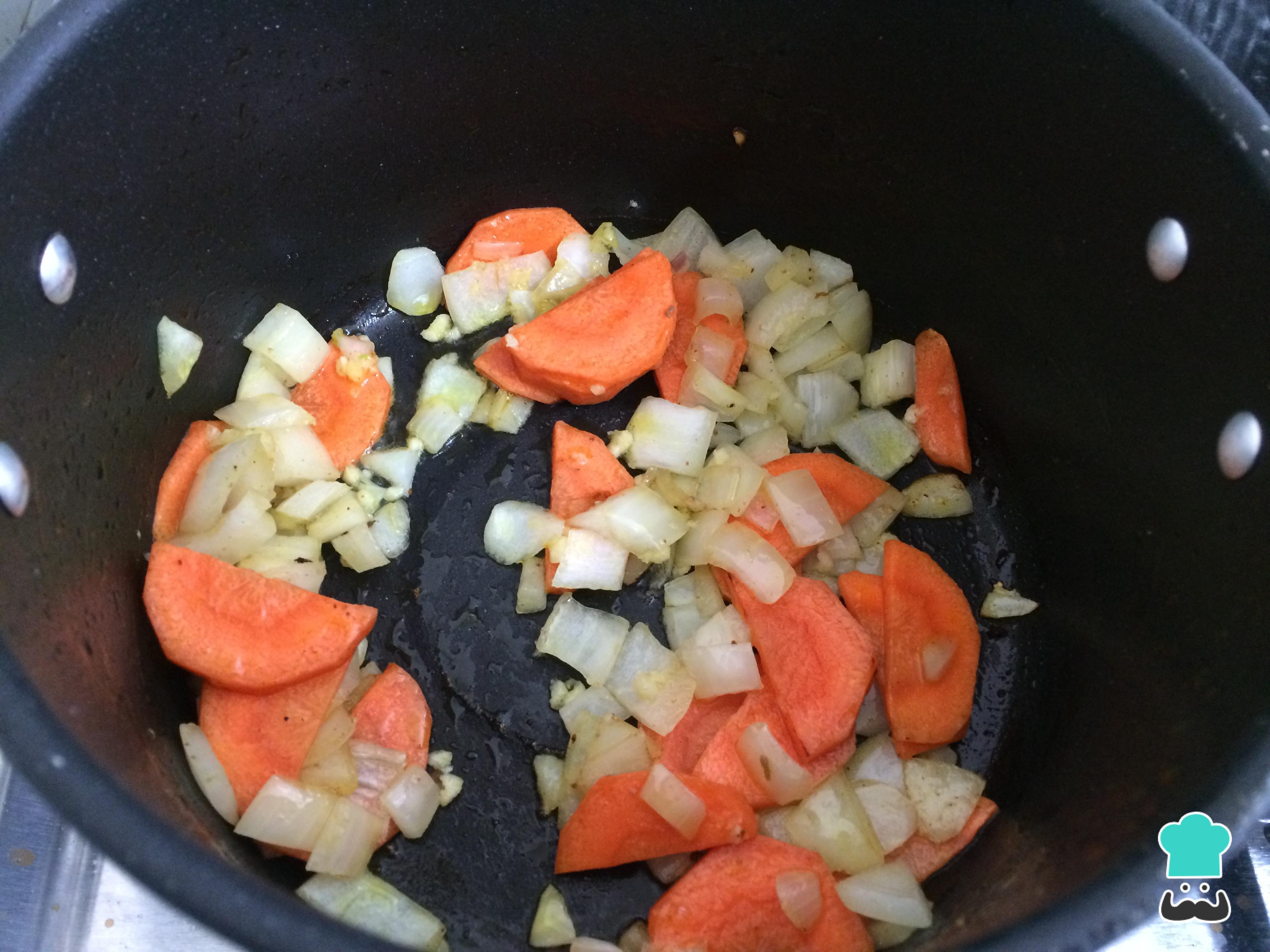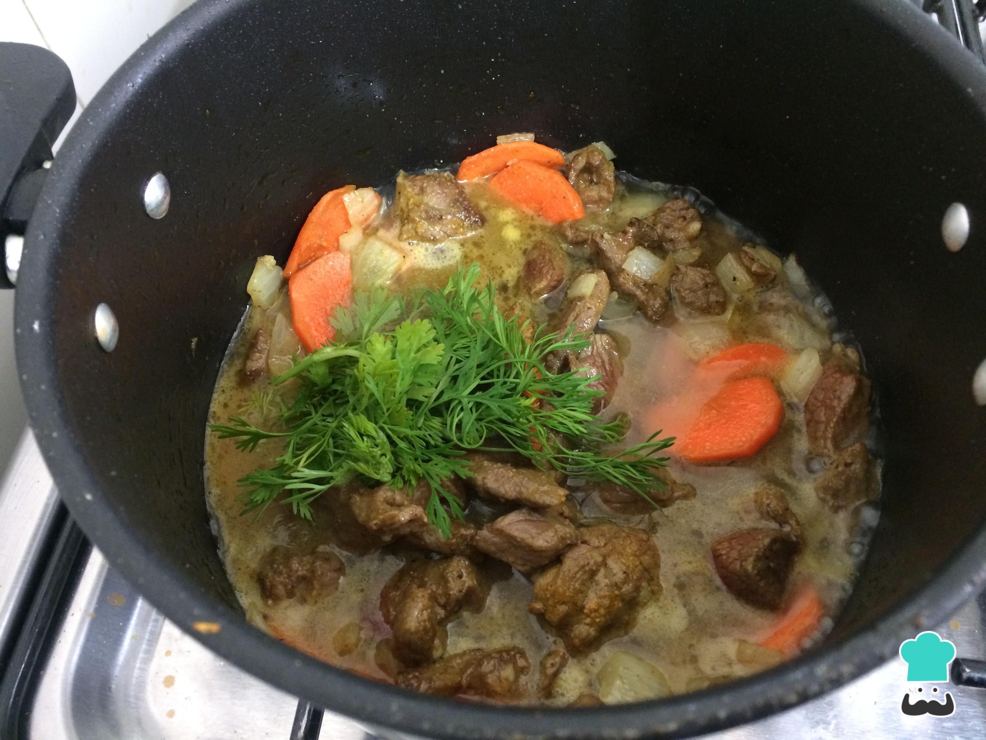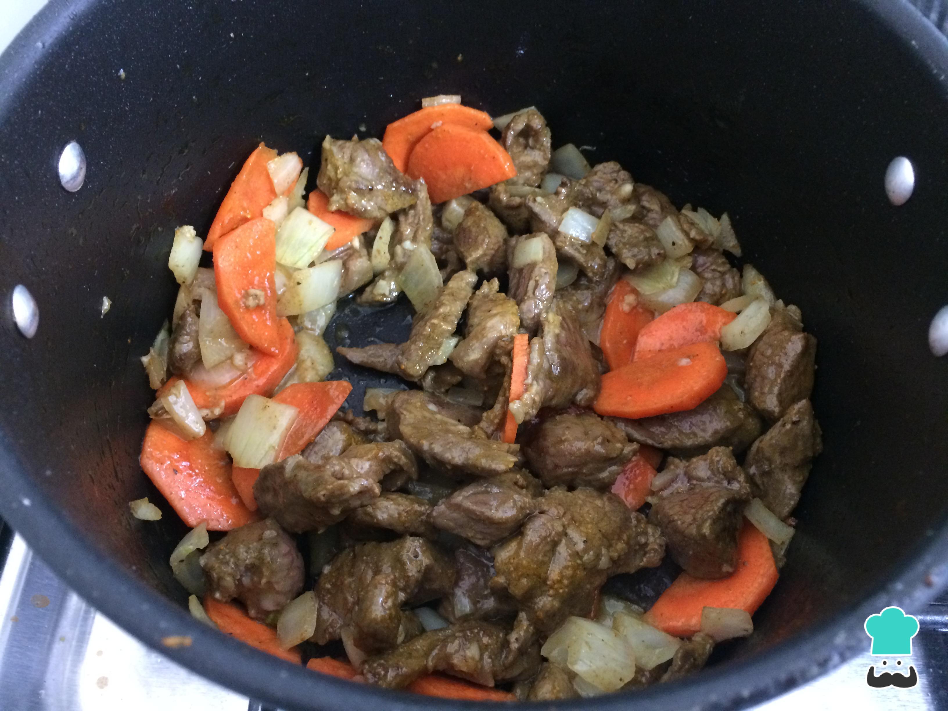 Retire a carne e refogue os legumes na mesma panela, por alguns minutos. Tempere a gosto com sal e pimenta.