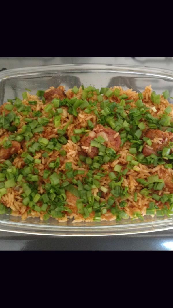 Seu arroz com costelinha de porco na panela de pressão está pronto! Se quiser sirva com cheiro verde picado e aprecie esta receita saborosa!