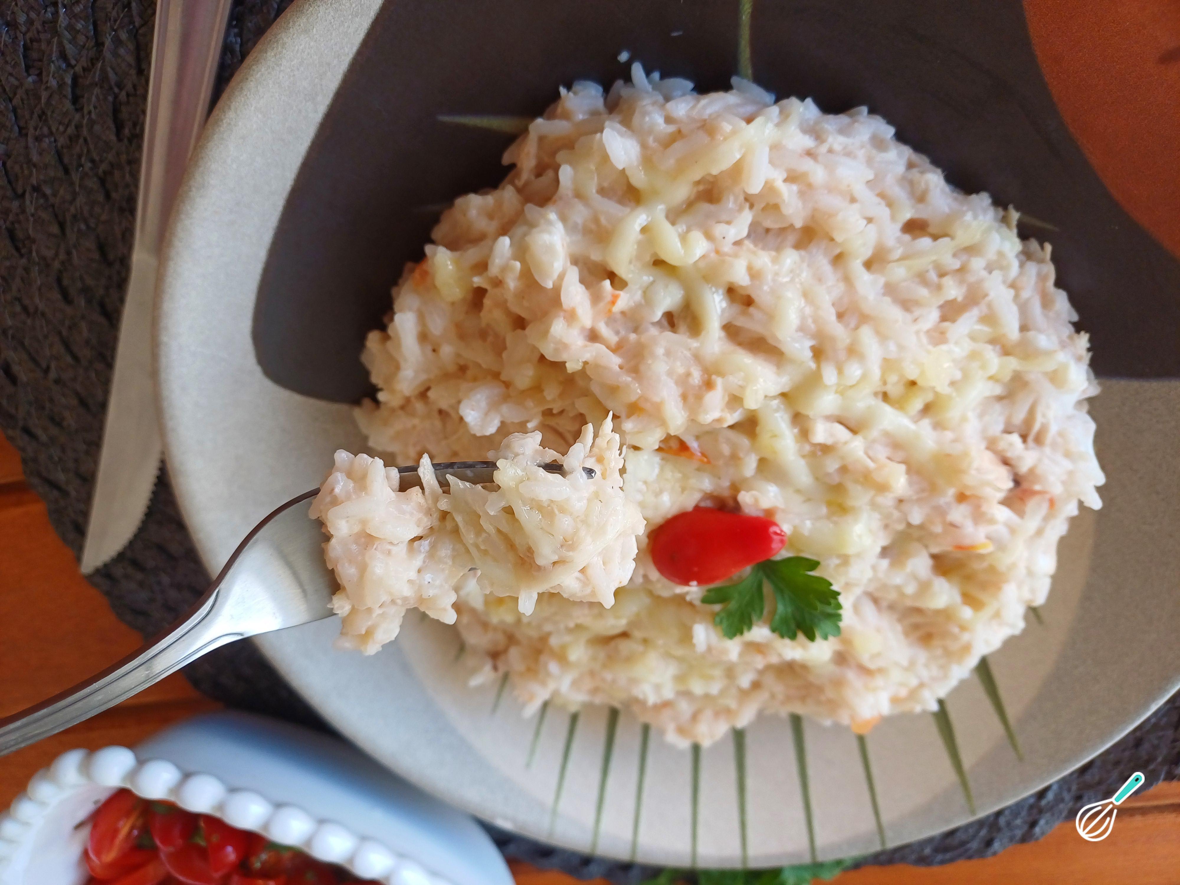Esse arroz cremoso tem como base o arroz branco comum, que é incrementado com frango desfiado, temperos aromáticos e, claro, uma generosa quantidade de requeijão cremoso para garantir uma textura aveludada e rica.