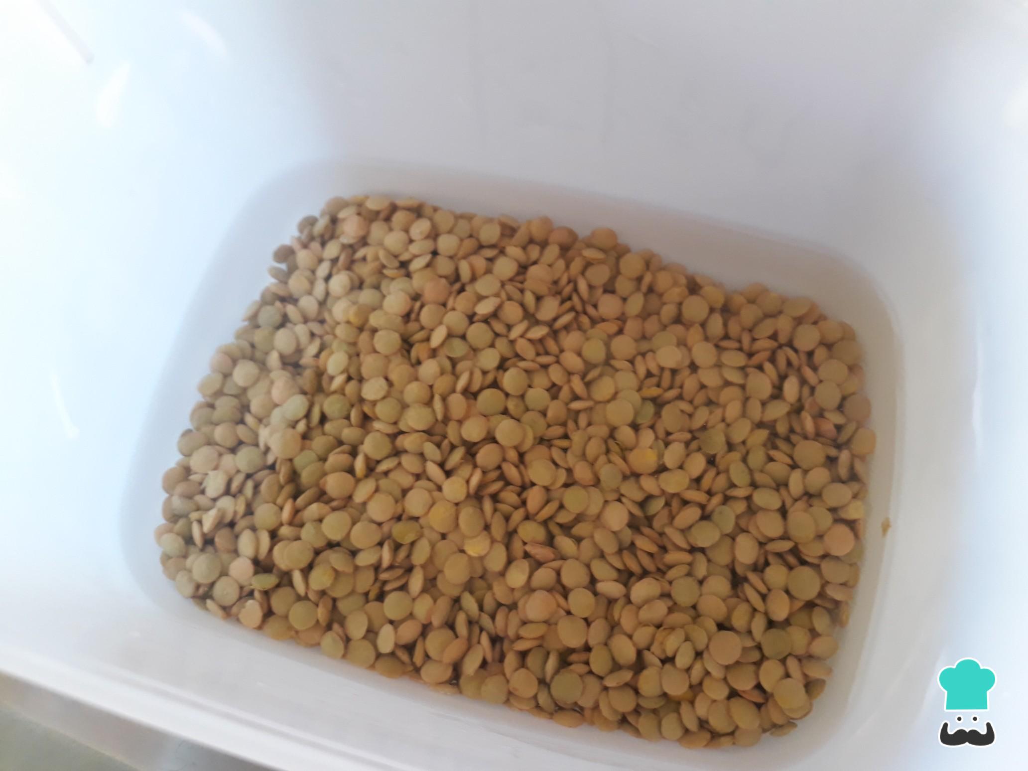 Deixe as lentilhas de molho na água em temperatura ambiente por 30 minutos. Depois do tempo indicado, escorra e lave-as bem.