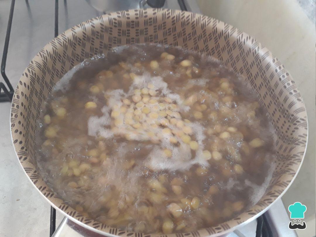 Em uma panela coloque as lentilhas escorridas e cubra com água filtrada. Deixe no fogo médio até levantar fervura. Assim que ferver conte 3 minutos, desligue e escorra.