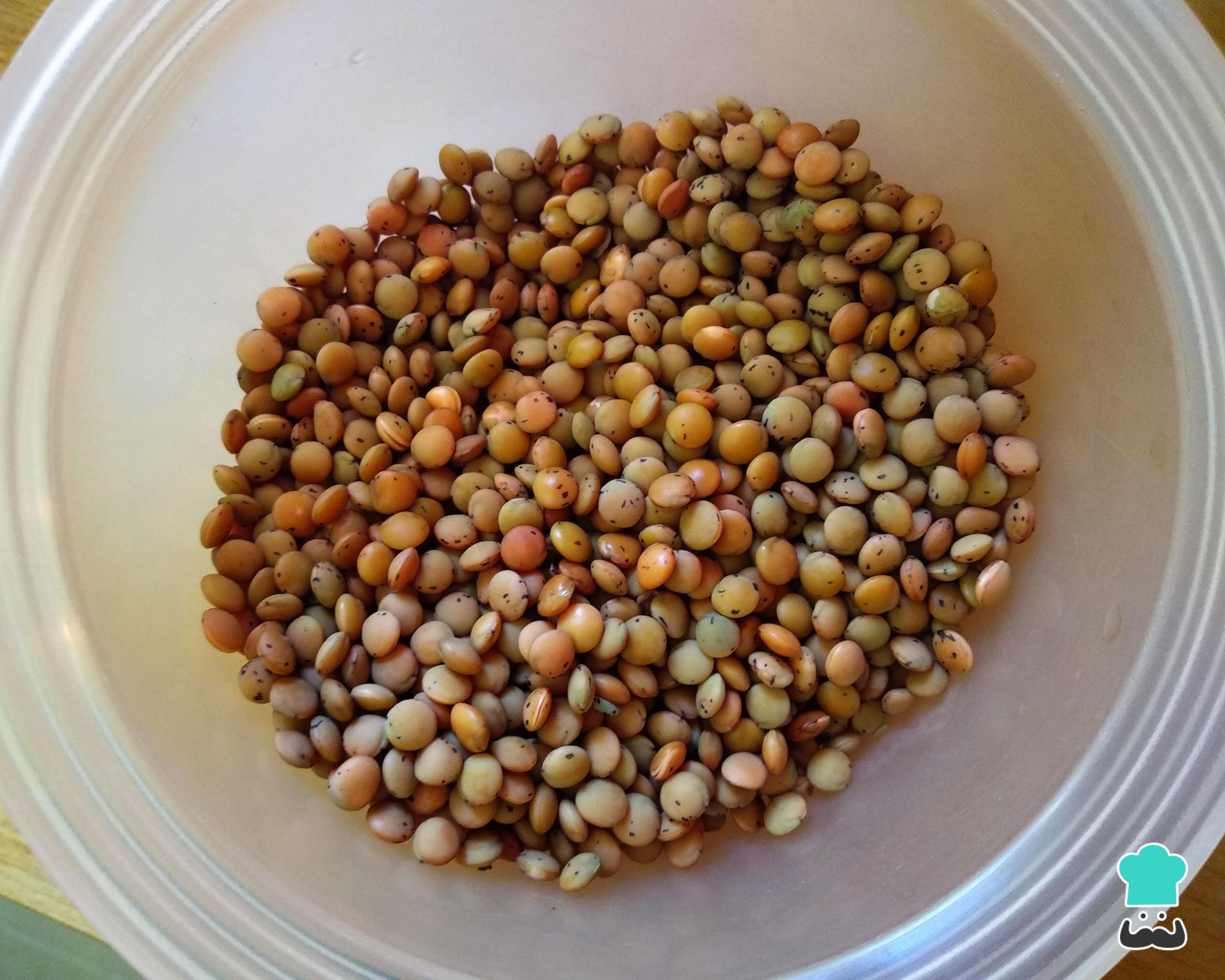 Primeiramente coloque as lentilhas de molho em água filtrada por 4 a 6 horas, isso é importante para que cozinhem mais depressa, praticamente ao mesmo tempo que o arroz. Depois escorra e enxague.