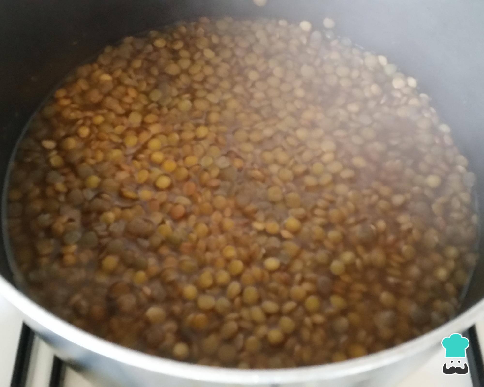 Dica: Se preferir você pode cozinhar as lentilhas na panela de pressão, assim será mais rápido.