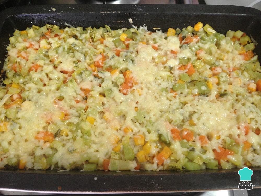 Coloque o conteúdo da tigela em um refratário grande e cubra com queijo parmesão a gosto. Asse em forno médio, preaquecido, até dourar (15 minutos).
