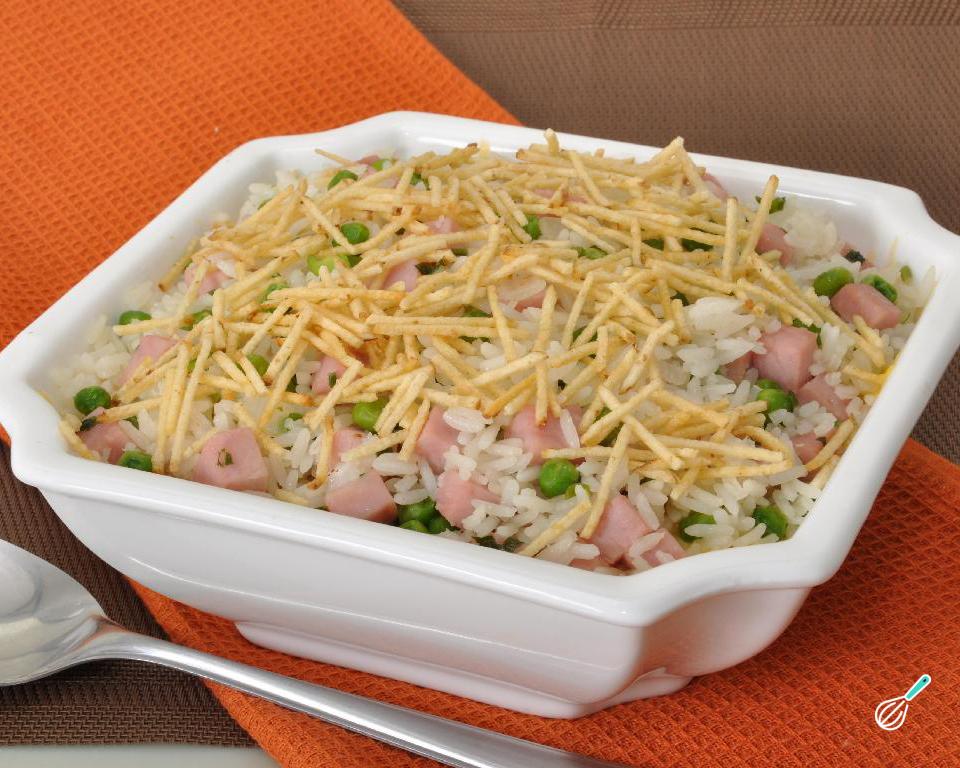 Receita de Arroz com presunto e batata palha