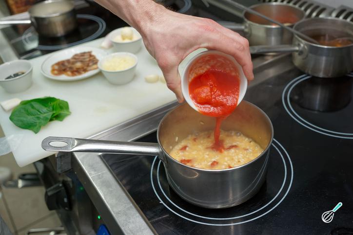 Dica: A água não deve secar totalmente para que o arroz fique bem caldoso!