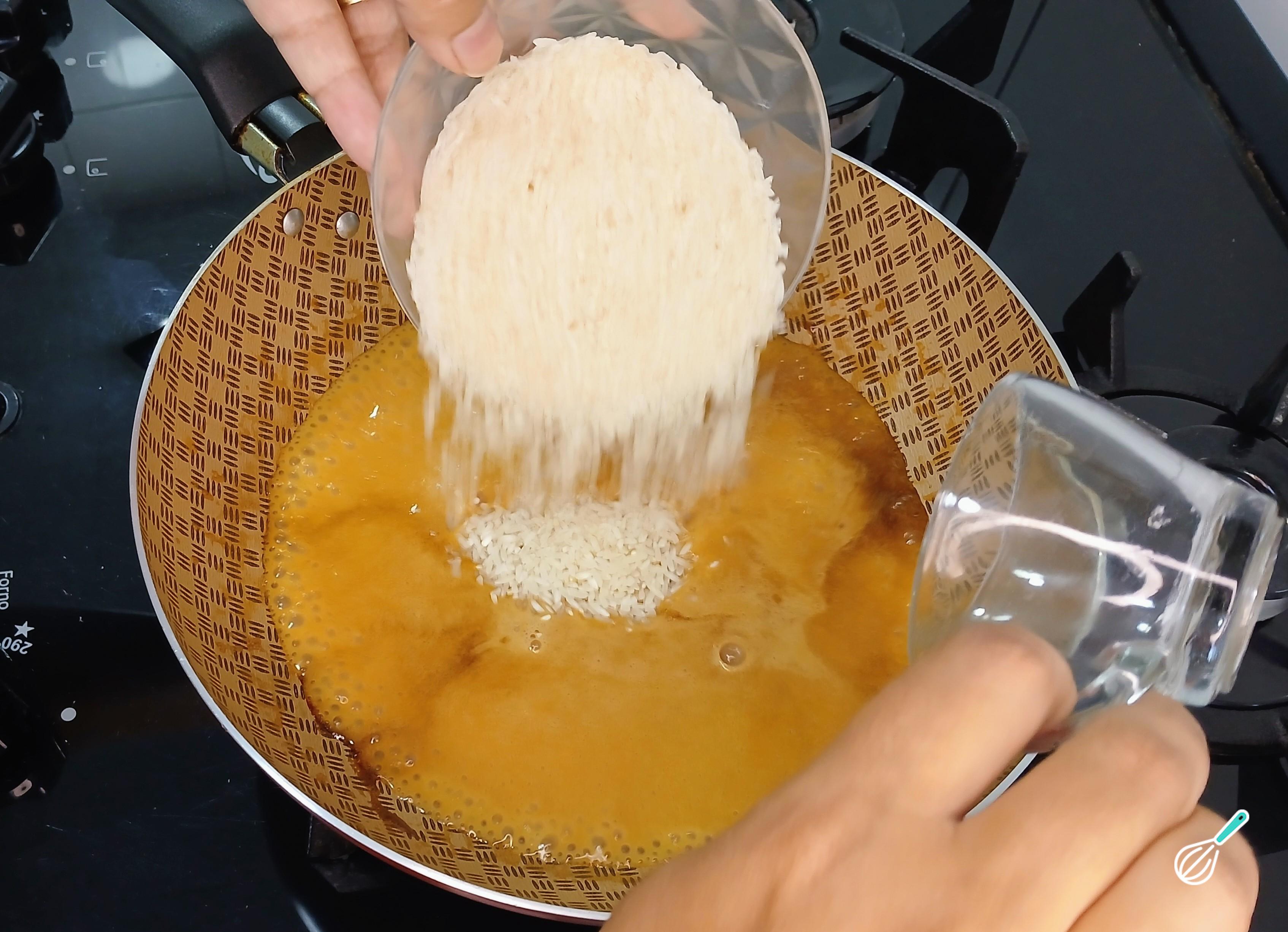 Dica: É importante provar o arroz nessa etapa para verificar o cozimento e ajustar o que falta em sabor.