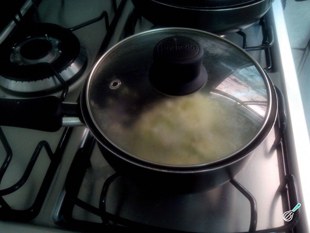 Tampe a panela e, em fogo baixo, espere cozinhar no próprio vapor por 2-3 minutos. O ideal é que a couve-flor fique al dente, ou seja, cozinhada mas não demasiado macia.