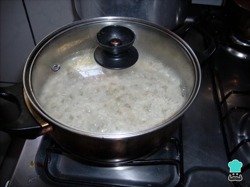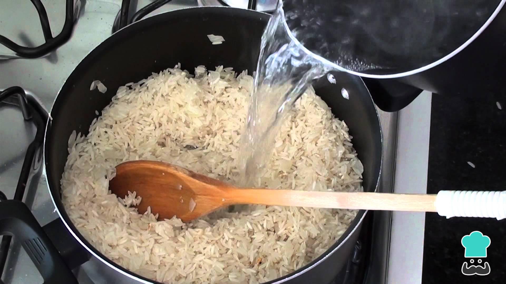 Junte a água fervente e deixe cozinhar com a panela parcialmente destampada por cerca de 10 minutos. Abaixe o fogo e deixe cozer por mais 5 minutos ou até evaporar a água. Desligue o fogo e reserve tampado por 5 minutos.