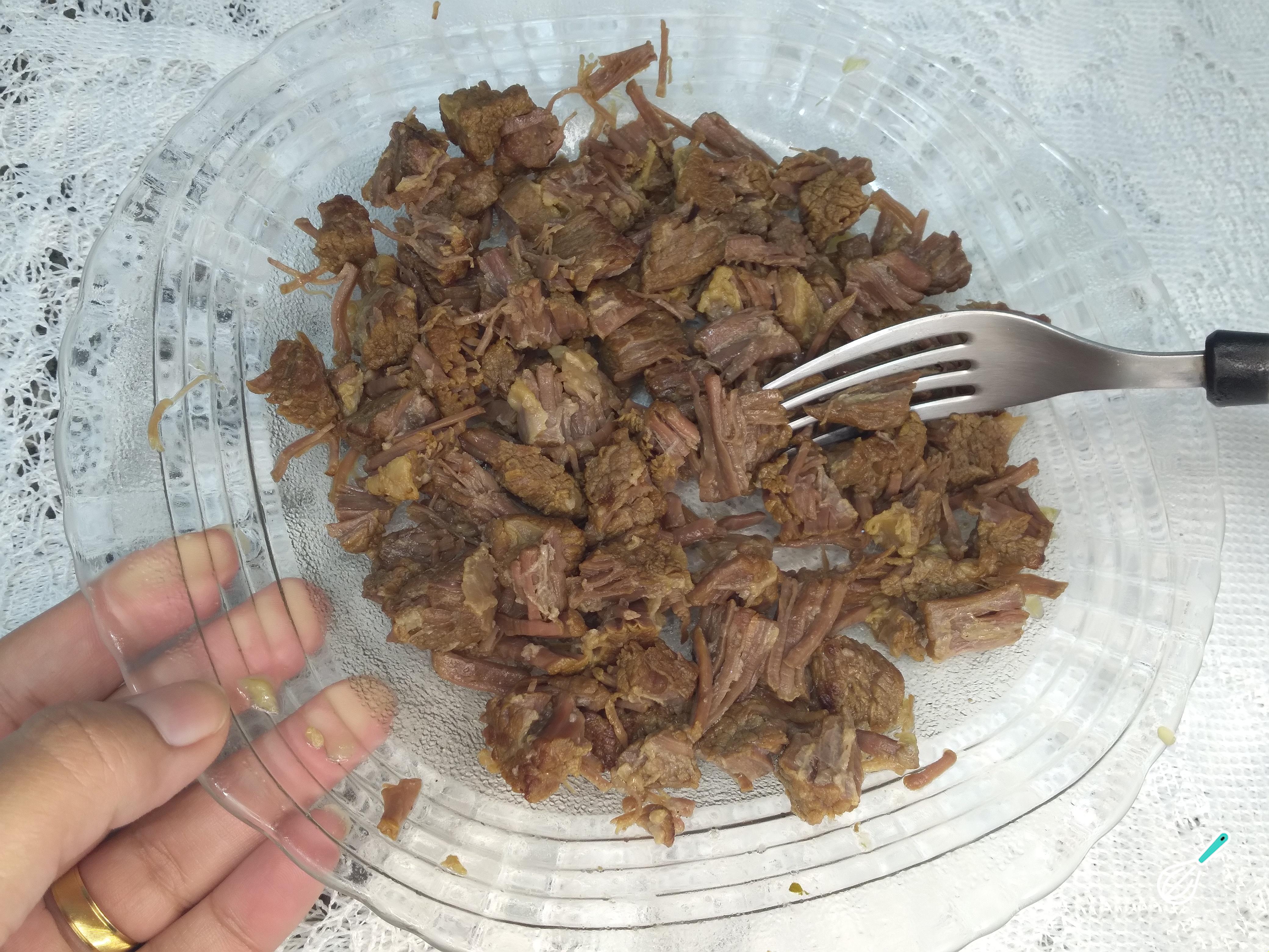 Dica: Deixe a carne em cubos médios para desfiar com facilidade depois de cozida.