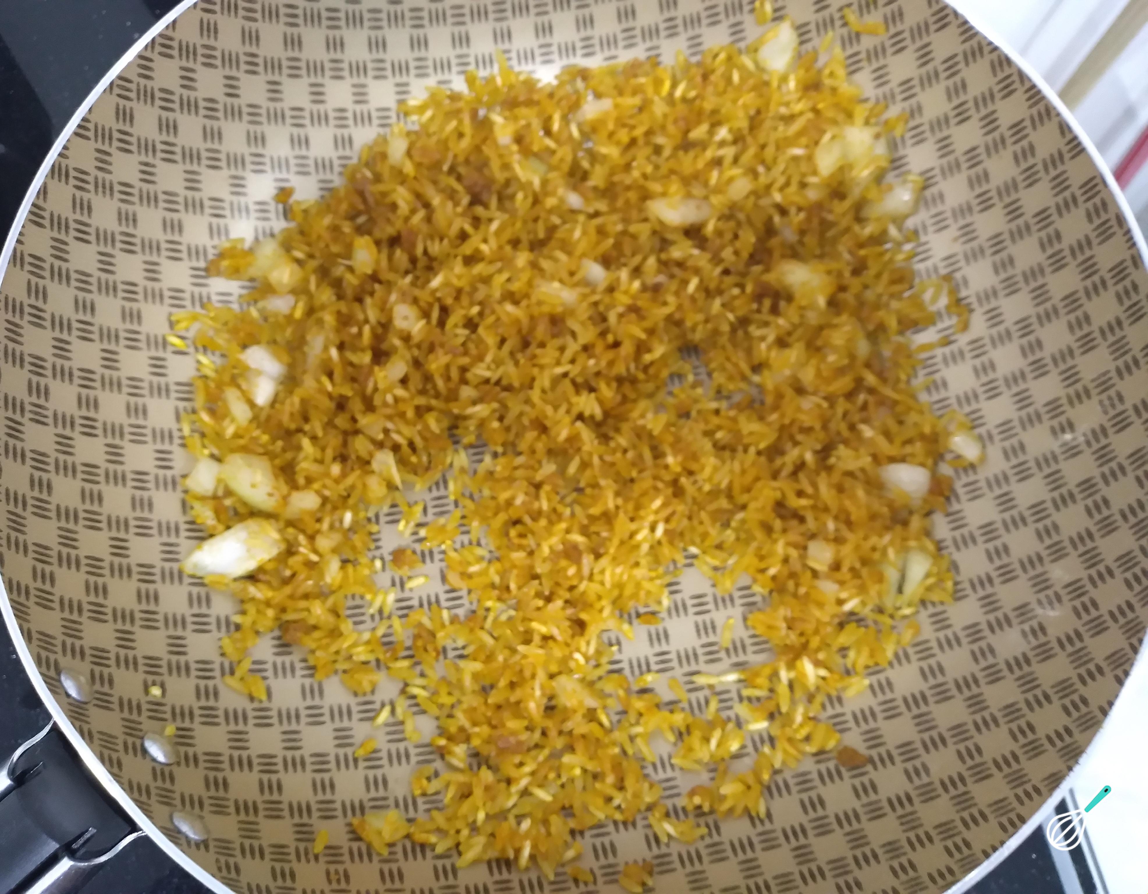 Dica: Coloque a cebola somente depois de refogar um pouco o arroz.