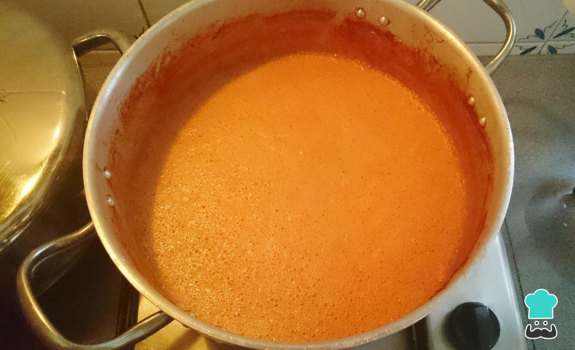 Quando os camarões e sapateiras estiverem cozinhados, retire e deixe amornar. Descasque os camarões, junte as cabeças e cascas ao caldo em que estiveram a cozinhar e triture tudo com o mixer ou no liquidificador. Coe e reserve este caldo de camarão para mais tarde.