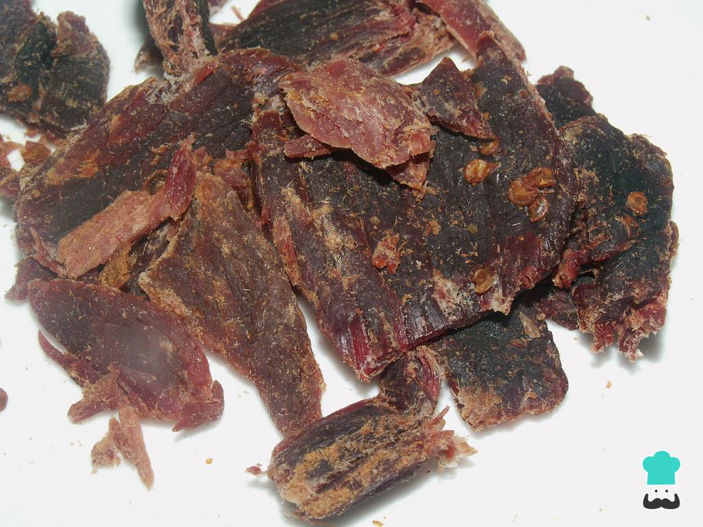 À parte frite a carne seca desfiada ou cortada em pedaços no azeite de dendê, até dourar.