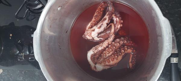 Sugestão. Coloque o polvo 🐙 direto na panela de pressão pré aquecida (bem), sem tempero, sem água. Feche. Quando pegar pressão, deixe por 5 minutos e desliga. Abra depois que a pressão terminou e o seu polvo estará pronto pra qualquer coisa. Infalível. Abraços