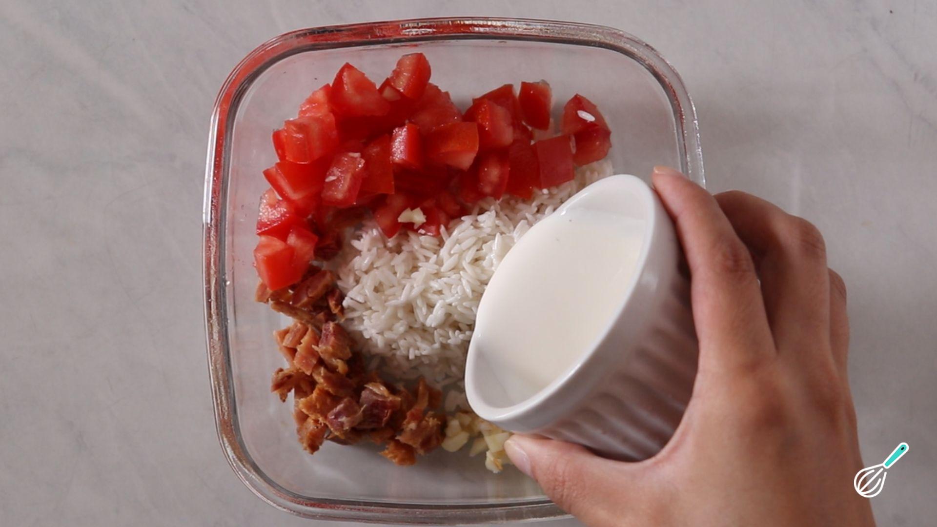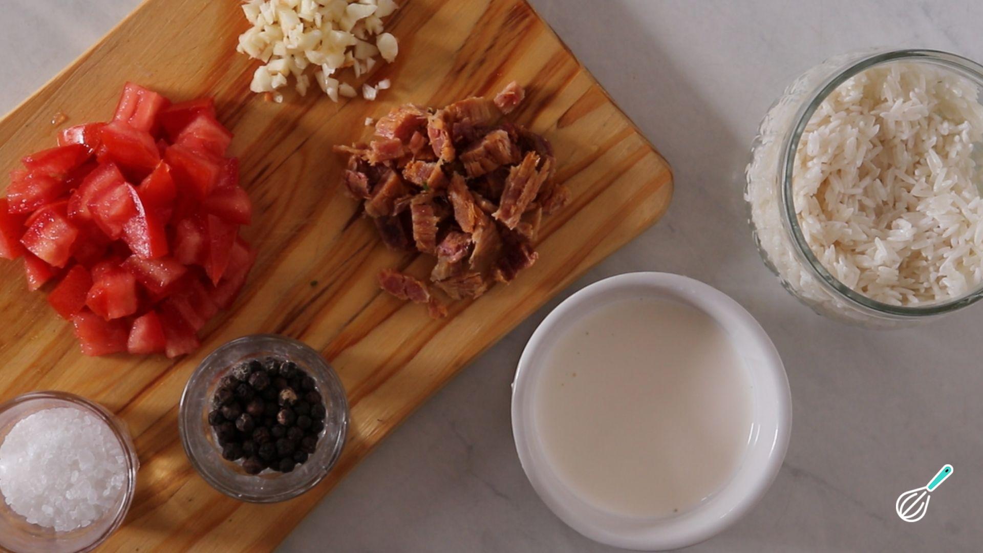 Separe os ingredientes para realizar o arroz de preguiçoso.