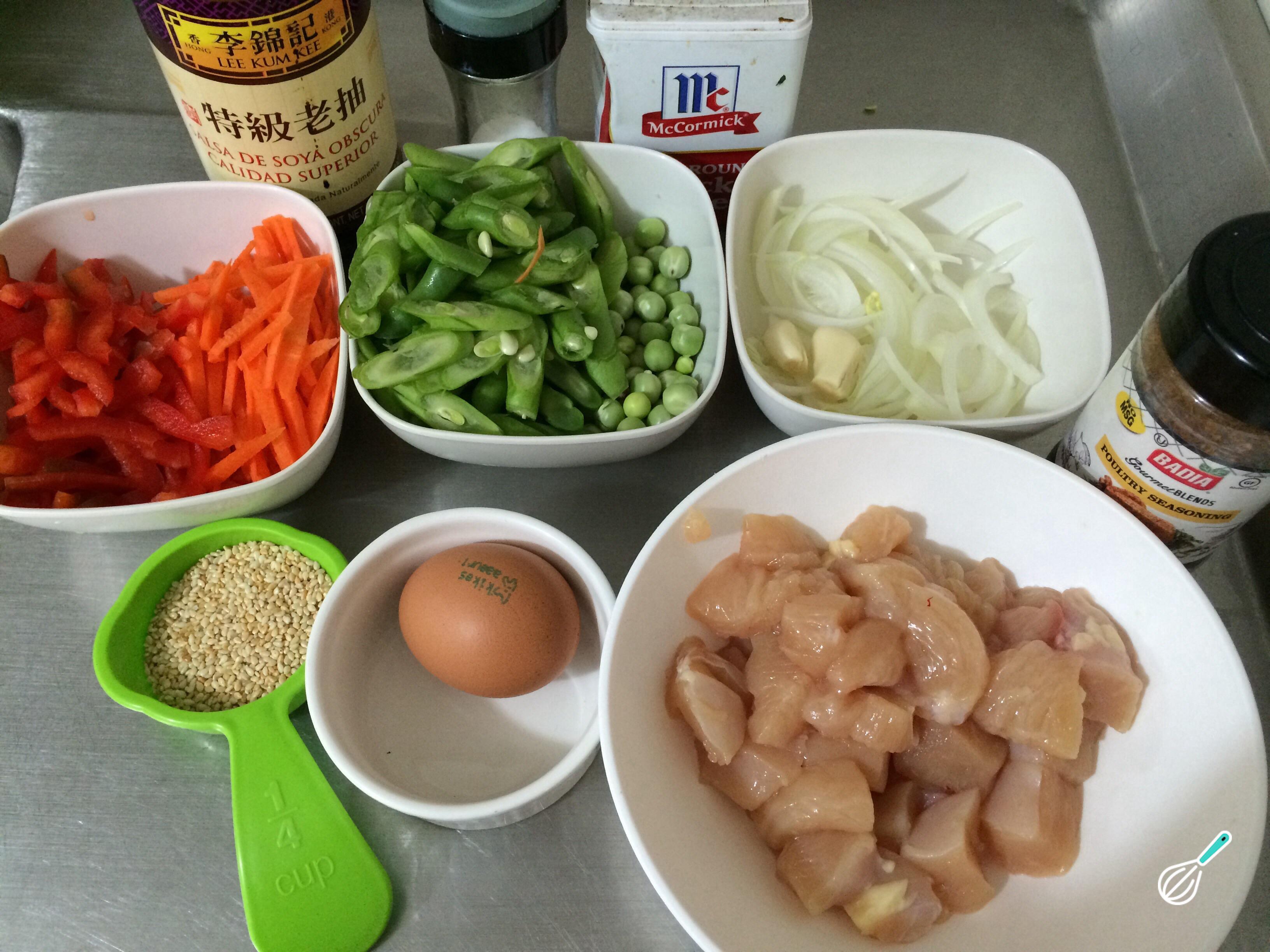 Sirva o arroz frito com frango em seguida, polvilhado com cebolinha ou mais sementes de gergelim, e aprecie esta receita chinesa. Bom apetite!