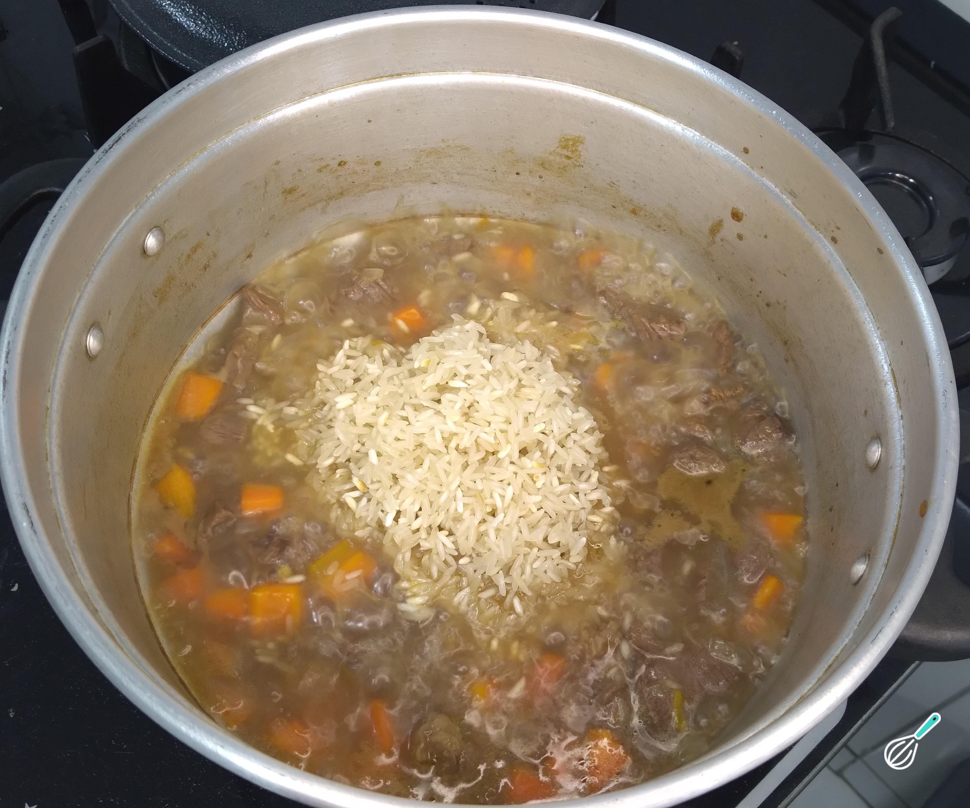 Dica: Vá colocando água e provando para verificar o cozimento do arroz.