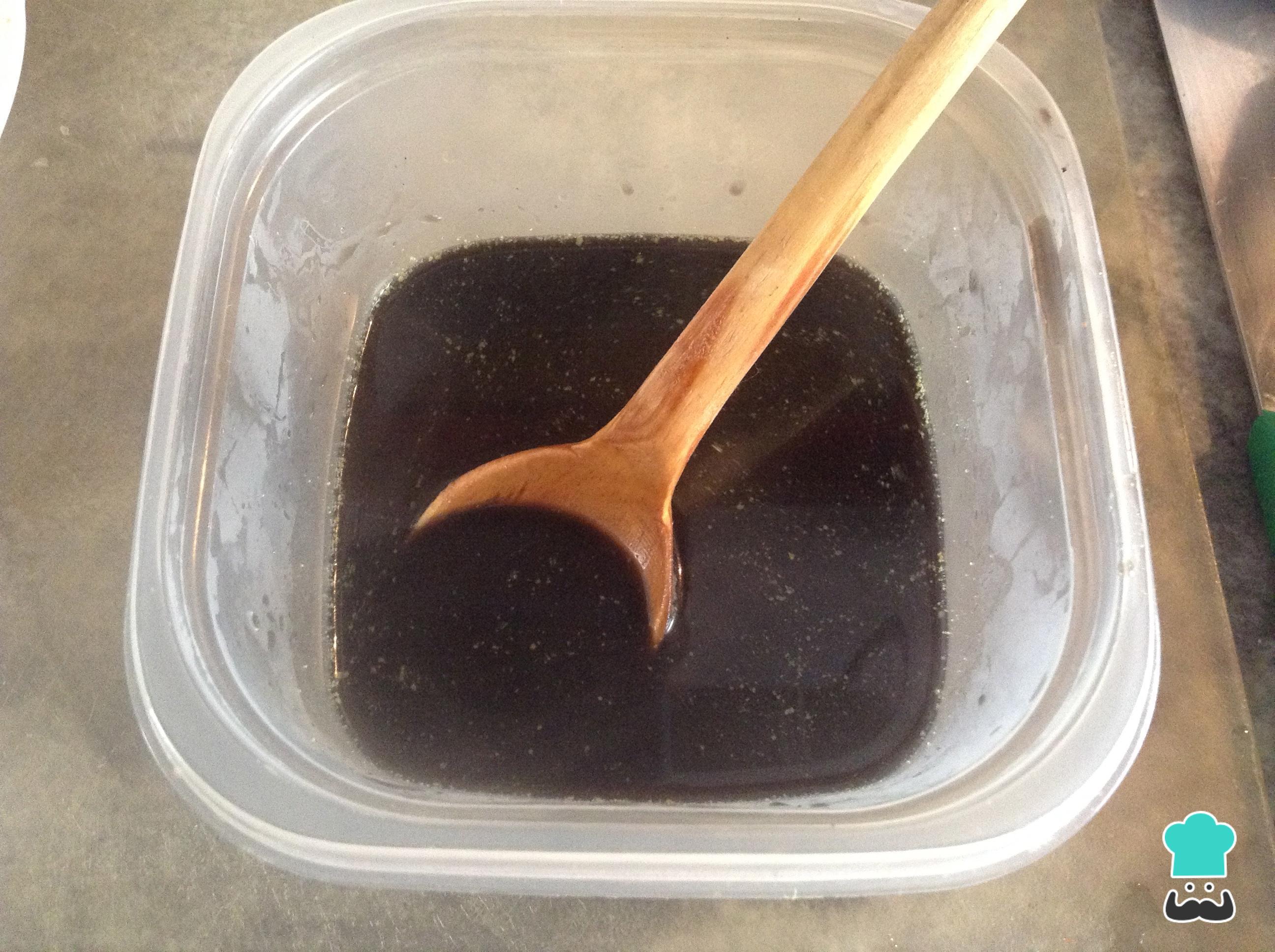 Hidrate a tinta de lulas com caldo de peixe quente. Reserve.